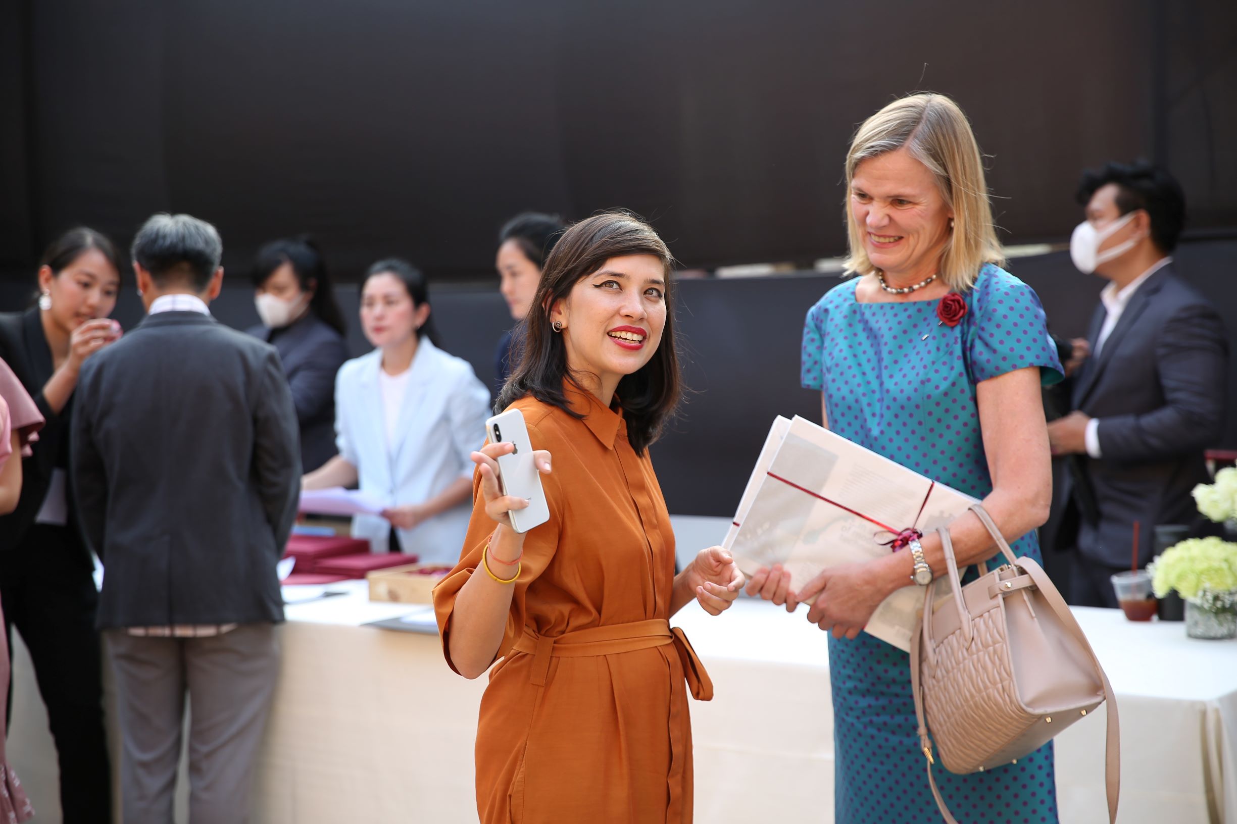 บรรยายใต้ภาพ : นายมาร์คุส แอคอัคทูสเซ่น รองประธานเจ้าหน้าที่บริหาร กลุ่มกิจการองค์กร ดีแทค (คนที่ 2 จากซ้าย) ท่านผู้หญิงสิริกิติยา เจนเซ่น (คนที่ 3 จากซ้าย) นายดอน ปรมัติวินัย รัฐมนตรีว่าการกระทรวงต่างประเทศ ประธานในงาน (คนที่ 3 จากขวา) และนางแชสตี เริดส์มูน เอกอัครราชทูตนอร์เวย์ ประจำประเทศไทย (คนที่ 2 จากขวา)