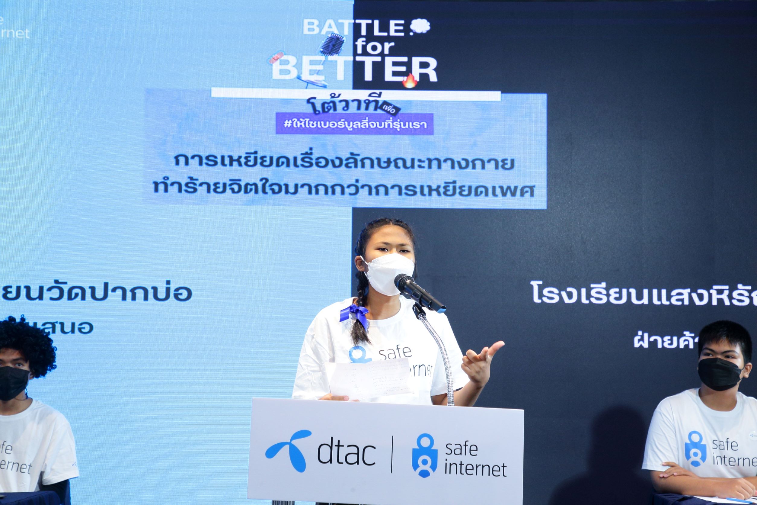 19 กันยายน 2565 – ดีแทค ร่วมกับ กทม. ในฐานะเอกชนภาคีเครือข่าย จัดงานเดือนกันยายน เทศกาลเดือนเด็กและเยาวชน “BKK เรนเจอร์ รวมพลังเด็กเปลี่ยนเมือง” เปิดโต้วาที Battle for Better รอบชิงชนะเลิศ เปิดพื้นที่ถกเถียงอย่างสร้างสรรค์ สร้างศูนย์กลางการรับฟัง ให้เด็กและเยาวชนโรงเรียนในกทม. ได้พูดแสดงทัศนะ ที่มีต่อญัตติ จากข้อตกลงร่วม 23 ข้อ สัญญาใจ แนวปฏิบัติแก้ปัญหาไซเบอร์บูลลี่
