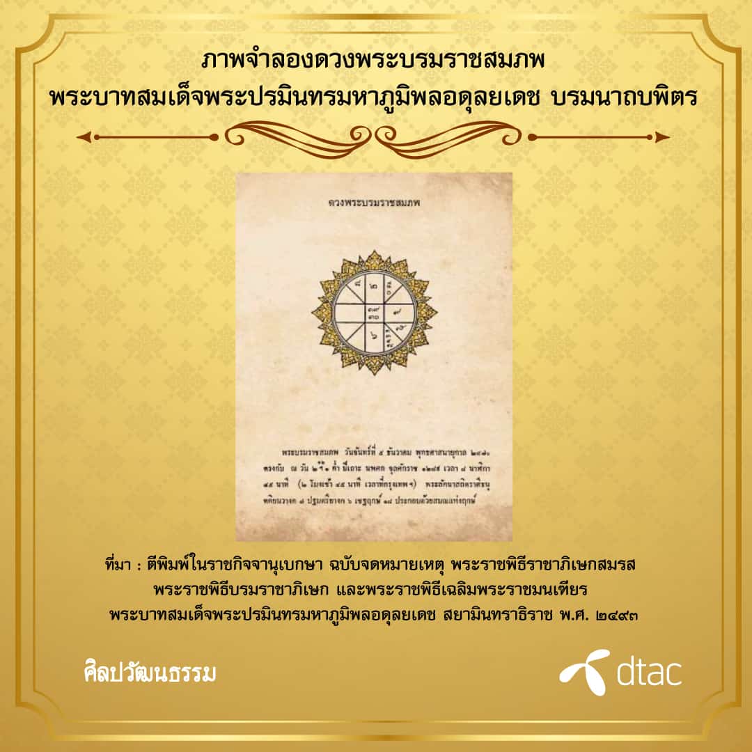 ดวงพระราชสมภพ เป็นเแผ่นทองคำจารึกวัน เดือน ปี ทั้งทางสุริยคติและจันทรคติ และเวลาพระราชสมภพ รวมทั้งวางพระลัคนาของพระมหากษัตริย์เมื่อมีพระบรมราชสมภพด้วย
