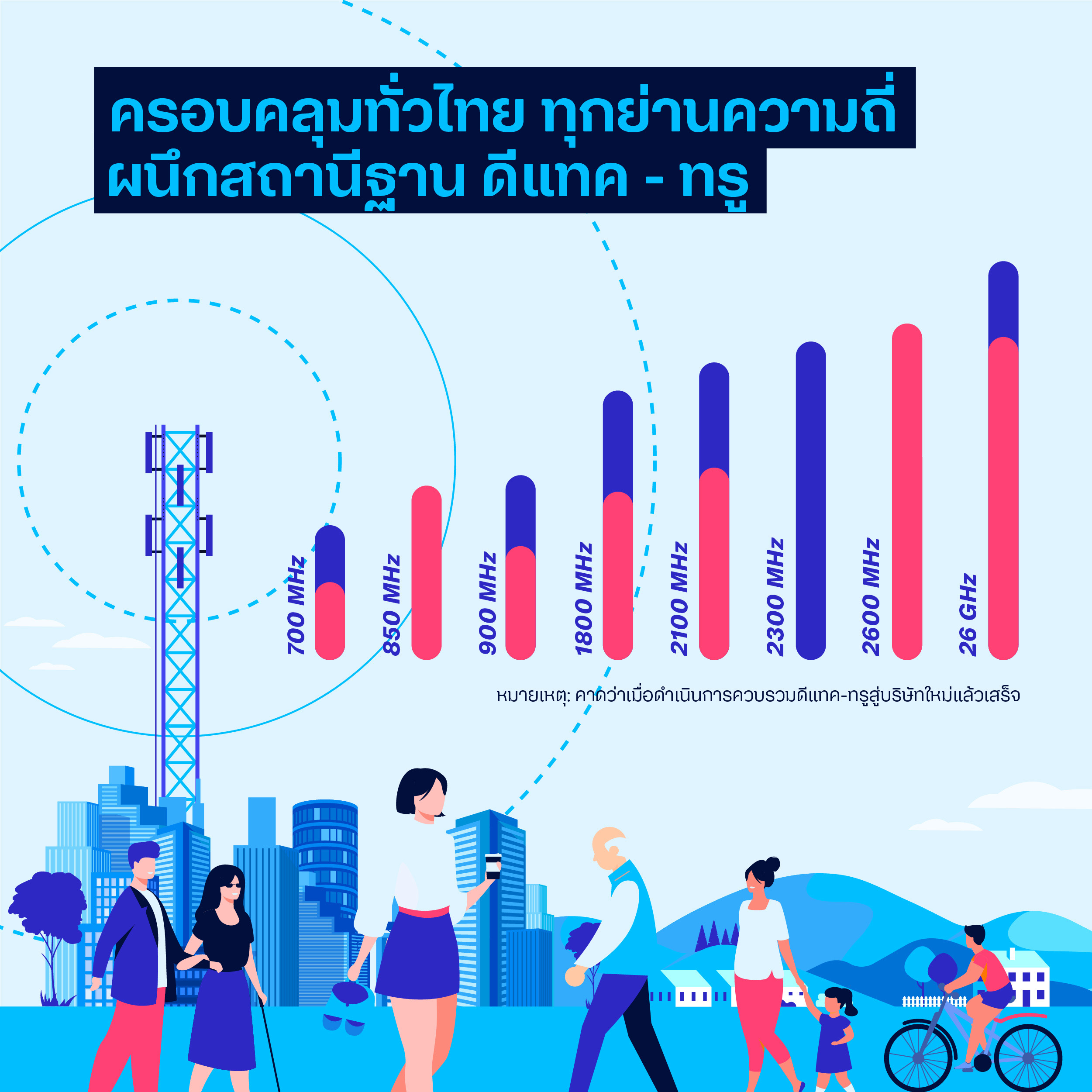 ดีแทคมีแผนให้ลูกค้าสามารถใช้งานอินเทอร์เน็ตความเร็วสูง 5G ด้วยการใช้งานบนคลื่นความถี่ 2600 MHz ยกระดับประสบการณ์ใช้งานที่ดีขึ้นเมื่อการควบรวมสู่บริษัทใหม่เสร็จสิ้นและมีแผนให้ลูกค้าทรู สามารถใช้ 4G LTE บนคลื่น 700 MHz ซึ่งเป็นคลื่นย่านความถี่ต่ำที่มีประสิทธิภาพสูงครอบคลุมเหนือกว่าเดิม เพิ่มพื้นที่ใช้งานที่ห่างไกล และใช้งานในอาคารที่อยู่อาศัย (indoor) ดีขึ้น เมื่อการควบรวมสู่บริษัทใหม่เสร็จสิ้น