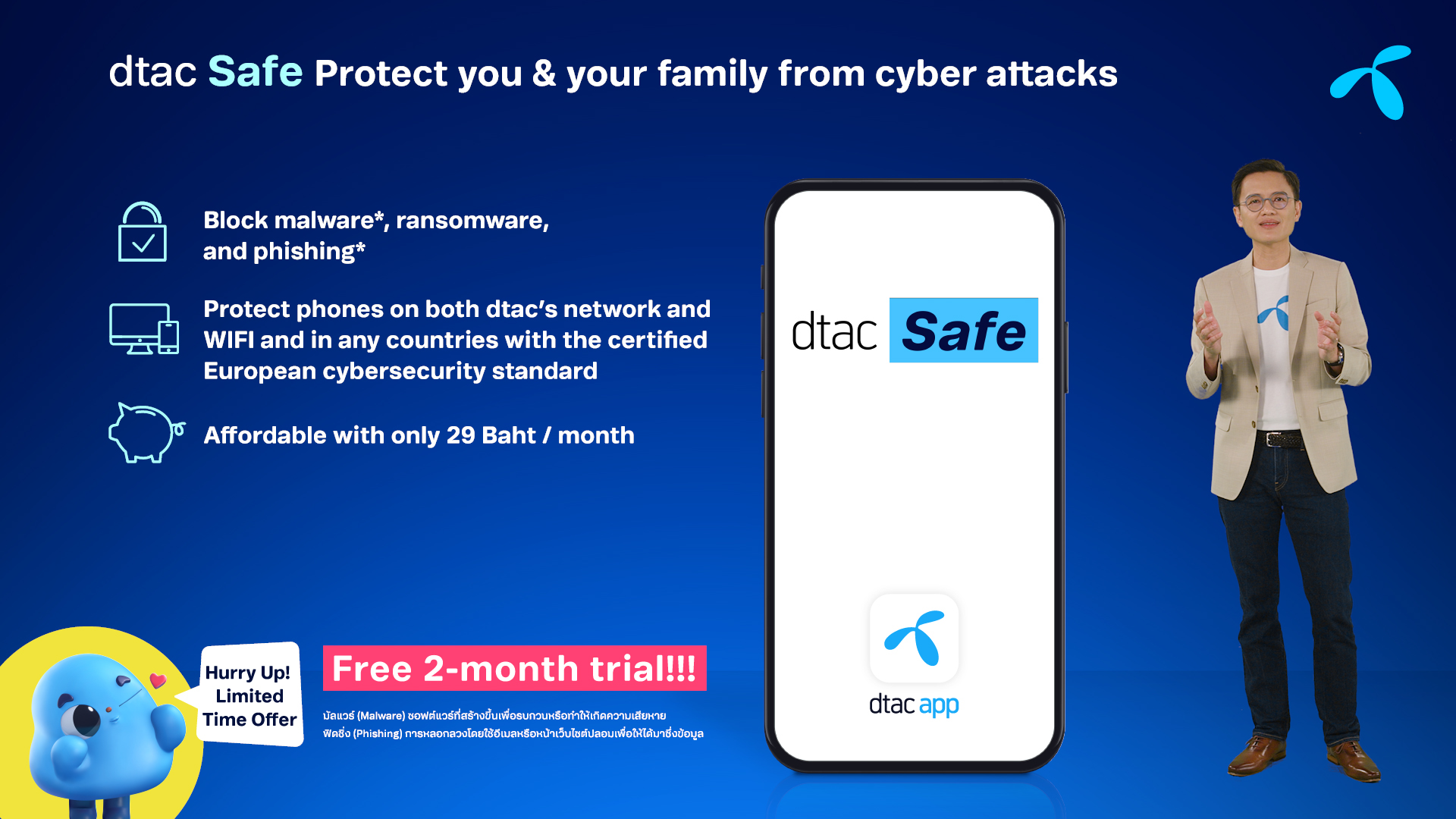 • dtac Safe บริการไซเบอร์ซิเคียวริตี้ ที่ปกป้องภัยคุกคามทางไซเบอร์ให้ใช้บริการดิจิทัลแบบไร้กังวล