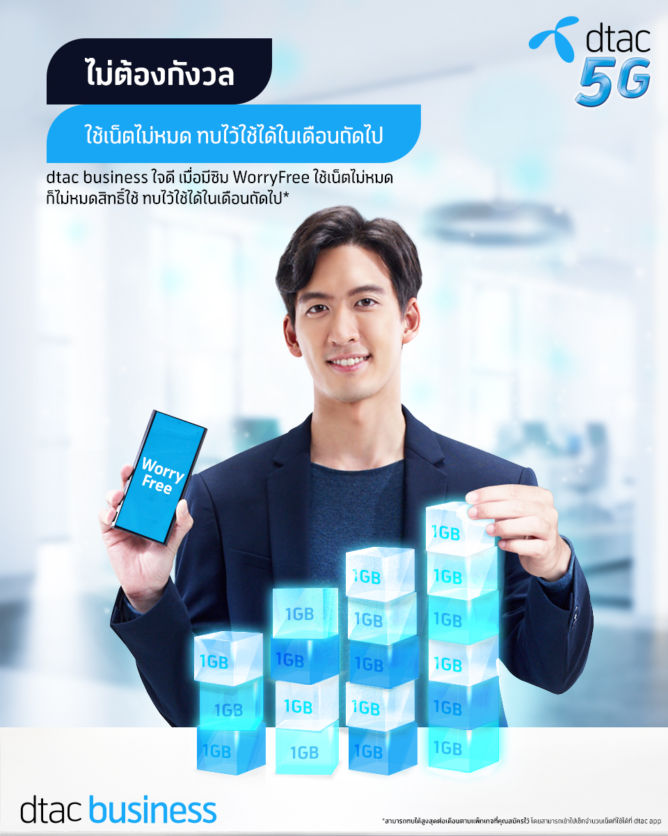 dtac business แนะนำผู้ประกอบการรายย่อย ลดค่าใช้จ่ายเกินจำเป็น ด้วย WorryFree SIM ใช้เน็ตไม่หมดทบไปใช้เดือนถัดไปได้เพิ่มขึ้นอัตโนมัติ เริ่มเมษายนนี้