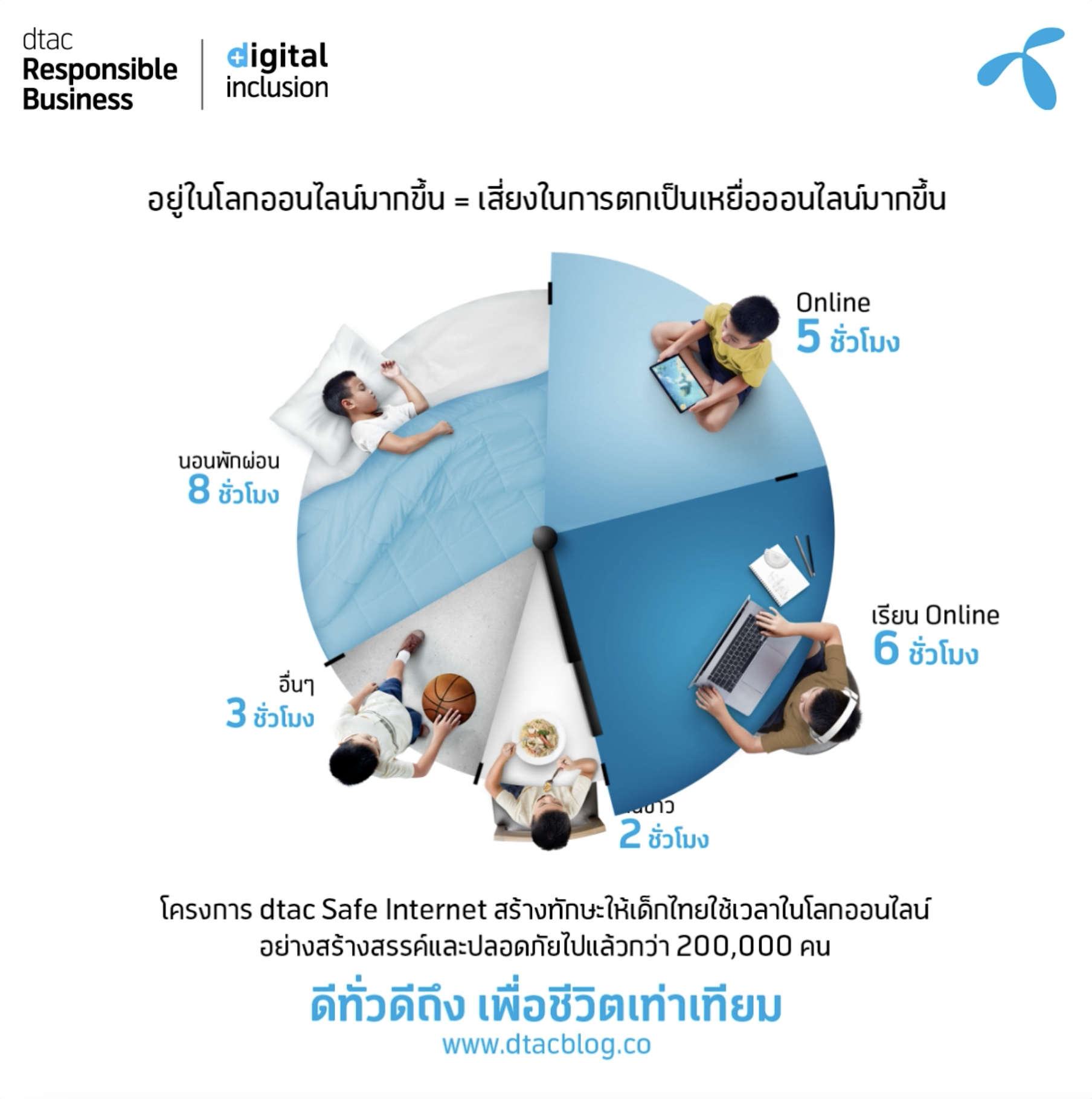 ในช่วงโควิด-19 ที่ผ่านมา ดีแทคได้สนับสนุน 2,000 ซิมพร้อมแพ็กเก็จเน็ตอันลิมิเต็ดความเร็ว 4 Mbps แก่กลุ่มเด็กนักเรียนยากจนพิเศษ ของ กสศ. นำร่องในเขตกรุงเทพฯ สำหรับการเรียนออนไลน์เป็นการเร่งด่วนลดอุปสรรคการเรียนรู้ เตรียมพร้อมหาทางออกระยะยาวในยุคเรียนออนไลน์ มุ่งสู่เป้าหมายความเท่าเทียมทางดิจิทัล (Digital inclusion) และลดการปิดกั้นแม้เกิดสถานการณ์โควิด-19