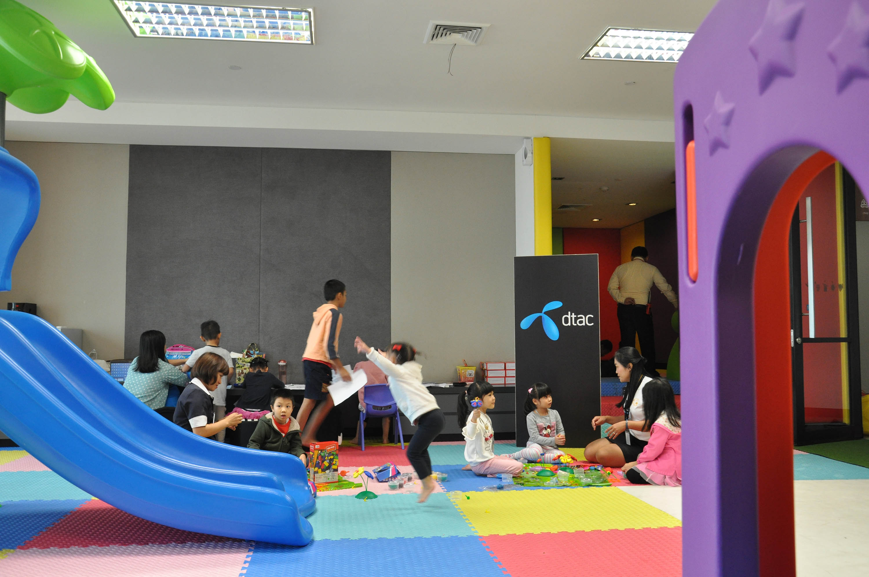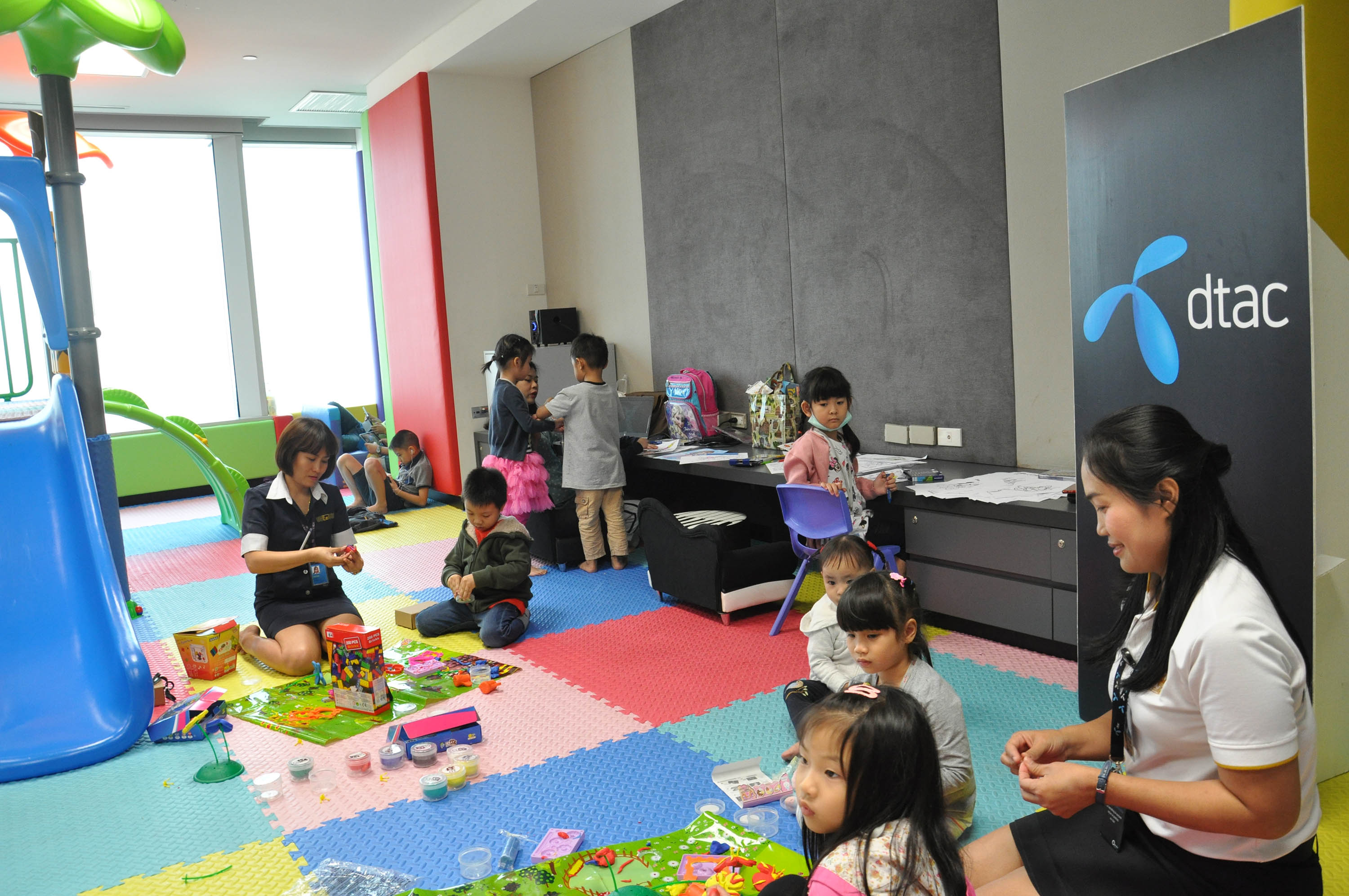 31 มกราคม 2562 – บริษัท โทเทิ่ล แอ็คเซ็ส คอมมูนิเคชั่น จำกัด (มหาชน) หรือดีแทค เปิดบ้านดีแทค เฮ้าส์ ช่วยแบ่งเบาภาระให้พนักงานนำบุตร หลาน ที่ต้องเผชิญสถานการณ์ฝุ่นละอองขนาดเล็ก PM2.5 ในพื้นที่ กทม.และปริมณฑล ในช่วงที่โรงเรียนปิดหนีฝุ่น 2 วัน ในวันพฤหัสที่ 31 ม.ค. และวันศุกร์ที่ 1 ก.พ มาอยู่ออฟฟิศ โดยจัดกิจกรรมพิเศษ ‘หนีฝุ่นจิ๋ว มาชิวที่ออฟฟิศพ่อแม่’ พร้อมขนมและคนดูแลเป็นกรณีพิเศษ เช่น กิจกรรมระบายสี ปั้นแป้งโดว์ ต่อเลโก้ ได้ตลอดทั้งวันที่ห้อง Playroom ชมการ์ตูนจอยักษ์ที่ห้อง Libraryในวันพฤหัส และในวันศุกร์ ยังมีกีฬา Mini Sport ที่เด็กชื่นชอบ มาตีปิงปอง ฟุตซอล และสนุกเกอร์ ได้ที่ชั้น 38 โดยดีแทค มีพื้นที่ในสำนักงาน ในการดูแลเด็กๆอย่างเพียบพร้อม ให้เด็กได้เล่นสนุกและปลอดภัย เช่น ในชั้น 32 ที่มีห้องสนามเด็กเล่น สไลด์เดอร์ ห้องสมุด และพื้นที่ในการออกกำลังกายที่ชั้น 38 พร้อมอุปกรณ์ออกกำลังกาย ห้องซ้อมดนตรี และห้องร้องคาราโอเกะอีกด้วย