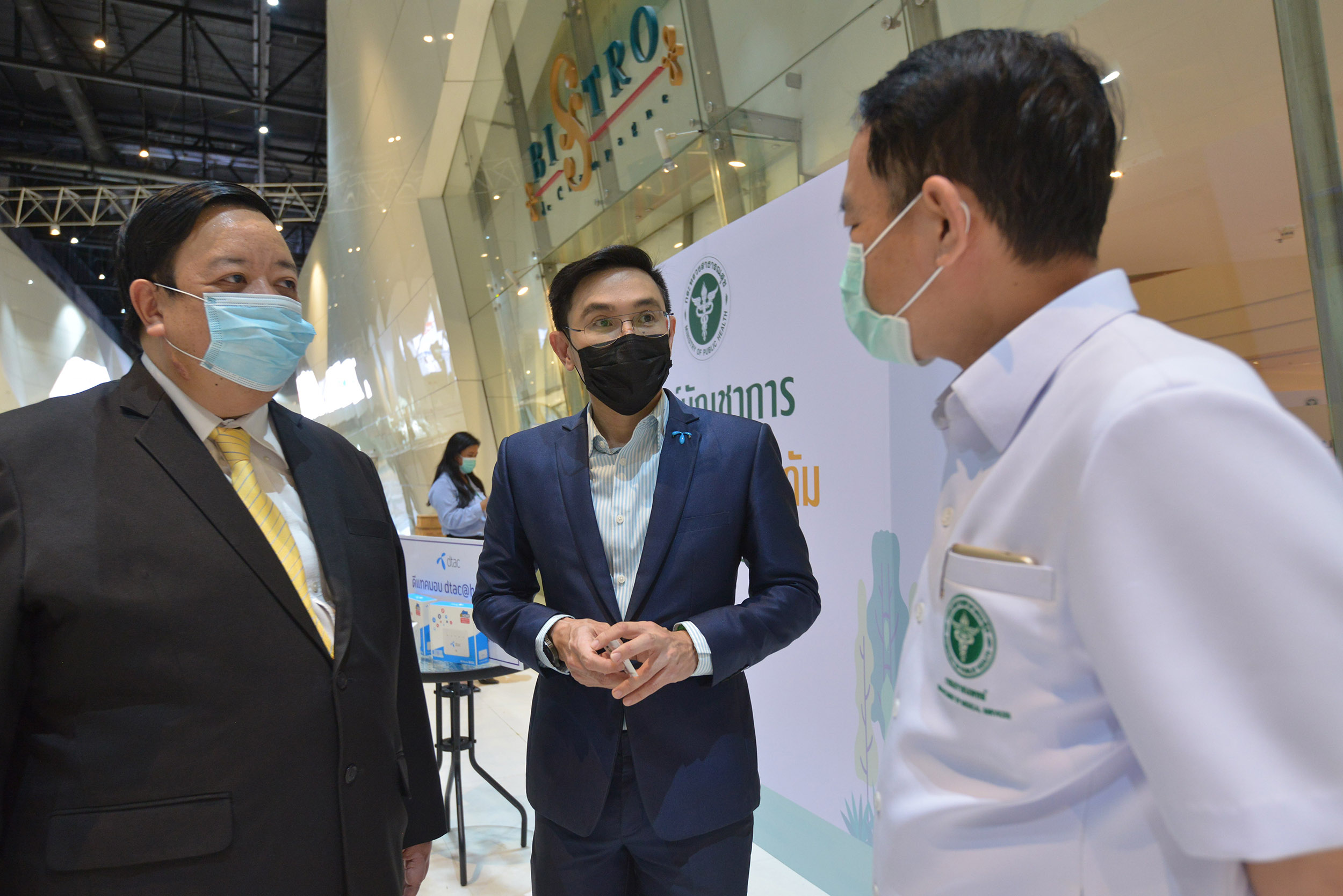 14 พฤษภาคม 2564 – ดีแทคลุยผนึกกำลัง กระทรวงสาธารณสุข กสทช. ติดตั้งอุปกรณ์เพื่อการบันทึกและวิเคราะห์ผลเพื่อการรักษาโควิด-19 พร้อมอินเทอร์เน็ตความเร็วสูง และรถโมบายล์เสริมสัญญาณ รองรับงานสาธารณสุขที่โรงพยาบาลสนามบุษราคัม1-5 จำนวนประมาณ 5,200 เตียง ที่อาคารชาเลนเจอร์ อิมแพค เมืองทองธานี พื้นที่กว่า 100,000 ตารางเมตร