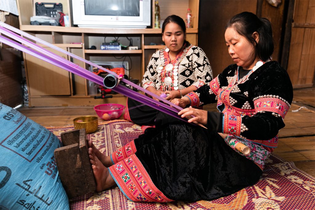 “กระเป๋าผ้าลาหู่มีความผูกผันกับกลุ่มชาติพันธุ์อย่างมาก แต่เดิมทีเป็นการผลิตเพื่อใช้ในครัวเรือน โดยใช้เวลาว่างจากการทำเกษตร โดยเฉพาะในช่วงฤดูแล้ง มาทำงานหัตถกรรมทอผ้า ซึ่งจะทำเฉพาะผู้หญิงเท่านั้น มีความคล้ายคลึงกับวัฒนธรรมการทอผ้าในภาคอีสาน” ครูอาหมี่ – เบญจลักษณ์ จะแฮ ชาวเขาเผ่าลาหู่แดงแห่งบ้านปางมะขาม อ.เชียงดาว อ.เชียงใหม่ และผู้ประกอบการกระเป๋าย่าม วิสาหกิจชุมชนกลุ่มลาหู่ไชยปราการ เล่าให้ dtacblog ฟัง