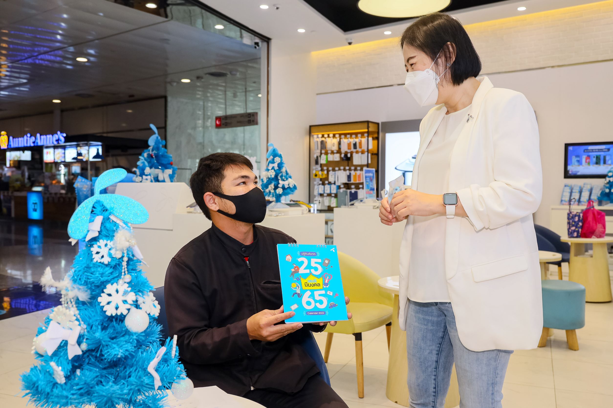 โดยจะเริ่มแจกปฏิทิน ตั้งแต่วันที่ 21 ธันวาคม 2564 เป็นต้นไป (จนกว่าสินค้าจะหมด) สำหรับลูกค้าที่เข้ามาทำธุรกรรมในร้านดังนี้ 1.ลูกค้าที่ชำระค่าบริการรายเดือนมูลค่า 500 บาทขึ้นไป 2. เปิดเบอร์ใหม่ เปลี่ยนเป็นรายเดือน หรือย้ายค่าย พร้อมสมัครแพ็กเกจมูลค่า 599 บาท 3.ซื้อสมาร์ทโฟน พร้อมสมัครแพ็กเกจ แพ็กใดก็ได้