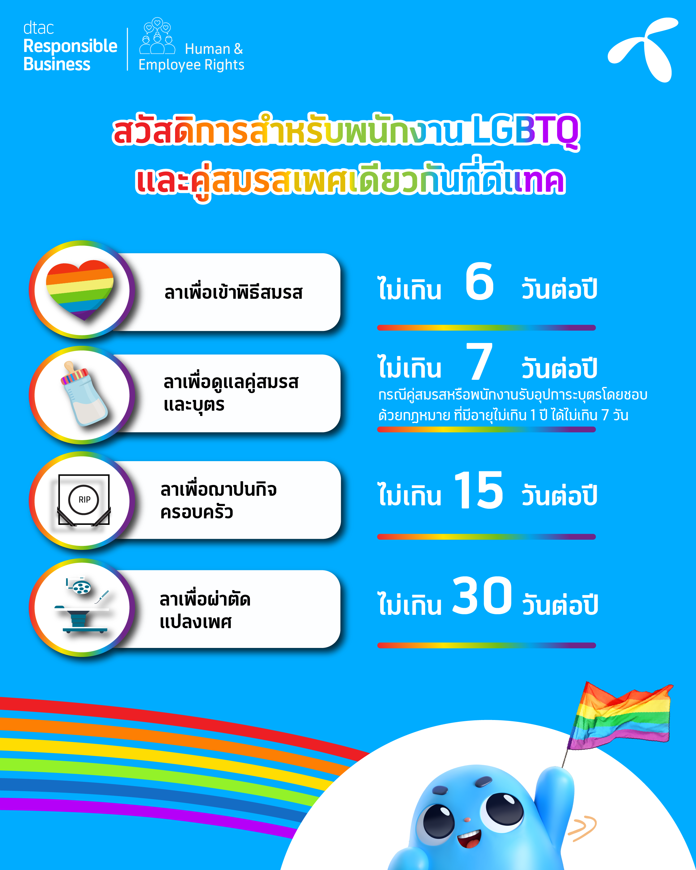 นายชารัด เมห์โรทรา ประธานเจ้าหน้าที่บริหาร บริษัท โทเทิ่ล แอ็คเซ็ส คอมมูนิเคชั่น จำกัด (มหาชน) หรือดีแทค กล่าวว่า “ที่ดีแทค เรายึดมั่นในมาตรฐานสูงสุดด้านสิทธิมนุษยชน ซึ่งรวมถึงการขับเคลื่อนความหลากหลายและการมีส่วนร่วม (diversity & inclusion) ทั้งในระดับองค์กรและสังคม ผ่านบริการเครือข่ายของเรา รวมถึงการขับเคลื่อนนโยบายต่างๆ อาทิ นโยบายลาคลอด 6 เดือน ซึ่งประกาศใช้ครั้งแรกปี 2559 และนโยบายสวัสดิการเท่าเทียมสำหรับคู่รักเพศเดียวกัน ประกาศใช้ในปี 2564 ในการจับมือกับแสนสิริและยูนิลีเวอร์ครั้งนี้ ดีแทคมุ่งหวังที่จะสร้างแรงบันดาลใจให้กับองค์กรธุรกิจอื่นๆ ในประเทศไทย นำเอานโยบายด้านความหลากหลายและการมีส่วนร่วมเข้ามาเป็นส่วนหนึ่งของหลักการดำเนินธุรกิจ ซึ่งสะท้อนออกมาเป็นการดำเนินงานของดีแทคในสามมิติ ได้แก่ แนวคิด #Inclusivedtac ดีแทคเชื่อว่าความเท่าเทียมและความหลากหลายนั้นเริ่มต้นจากการเปิดให้ทุกคนในองค์กรเข้ามามีส่วนร่วม, แผนธุรกิจ ‘ดีทั่วดีถึง ดีไปด้วยกันทุกคน (Good for All, Good Together)’ เพื่อช่วยให้ผู้พิการสามารถเข้าถึงบริการการเชื่อมต่อได้มากยิ่งขึ้น และโครงการ Safe Internet เสริมสร้างภูมิคุ้มกันออนไลน์และสอนให้เด็กและเยาวชนใช้ประโยชน์จากโลกออนไลน์ได้อย่างปลอดภัย และปกป้องตนเองจากภัยออนไลน์ รวมถึงการกลั่นแกล้งออนไลน์ (ไซเบอร์บูลลี่) ซึ่งครูหยิบยกไปขยายผลต่อในรั้วโรงเรียน และ ‘ข้อปฏิบัติร่วมเพื่อหยุดการไซเบอร์บูลลี่’ ซึ่งทำหน้าที่เป็นแนวทางในการหยุดยั้งการกลั่นแกล้งออนไลน์ในโรงเรียน”