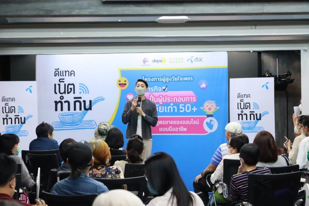 ภายใต้ภารกิจปั้นผู้ประกอบการวัยเก๋า 50+ ยังแฮปปี้ได้เข้ามาช่วยสนับสนุนดีแทคในการดูแลผู้สูงอายุที่เข้าร่วมโครงการ นับตั้งแต่เรื่องระบบรับสมัคร การแจ้งผลการคัดเลือก การประสานงานเข้ากลุ่มไลน์เพื่อรับข้อมูลการอบรมและกิจกรรมต่างๆ ที่เกิดขึ้น อีกทั้งยังมีการคัดเลือกสถานที่การจัดอบรมให้เหมาะสมกับการเดินทาง และอาหารนั้นมีรสชาติถูกปากผู้สูงวัย ซึ่งเป็นเกร็ดเล็กน้อยที่ยังแฮปปี้ให้ความสำคัญเป็นอย่างมาก