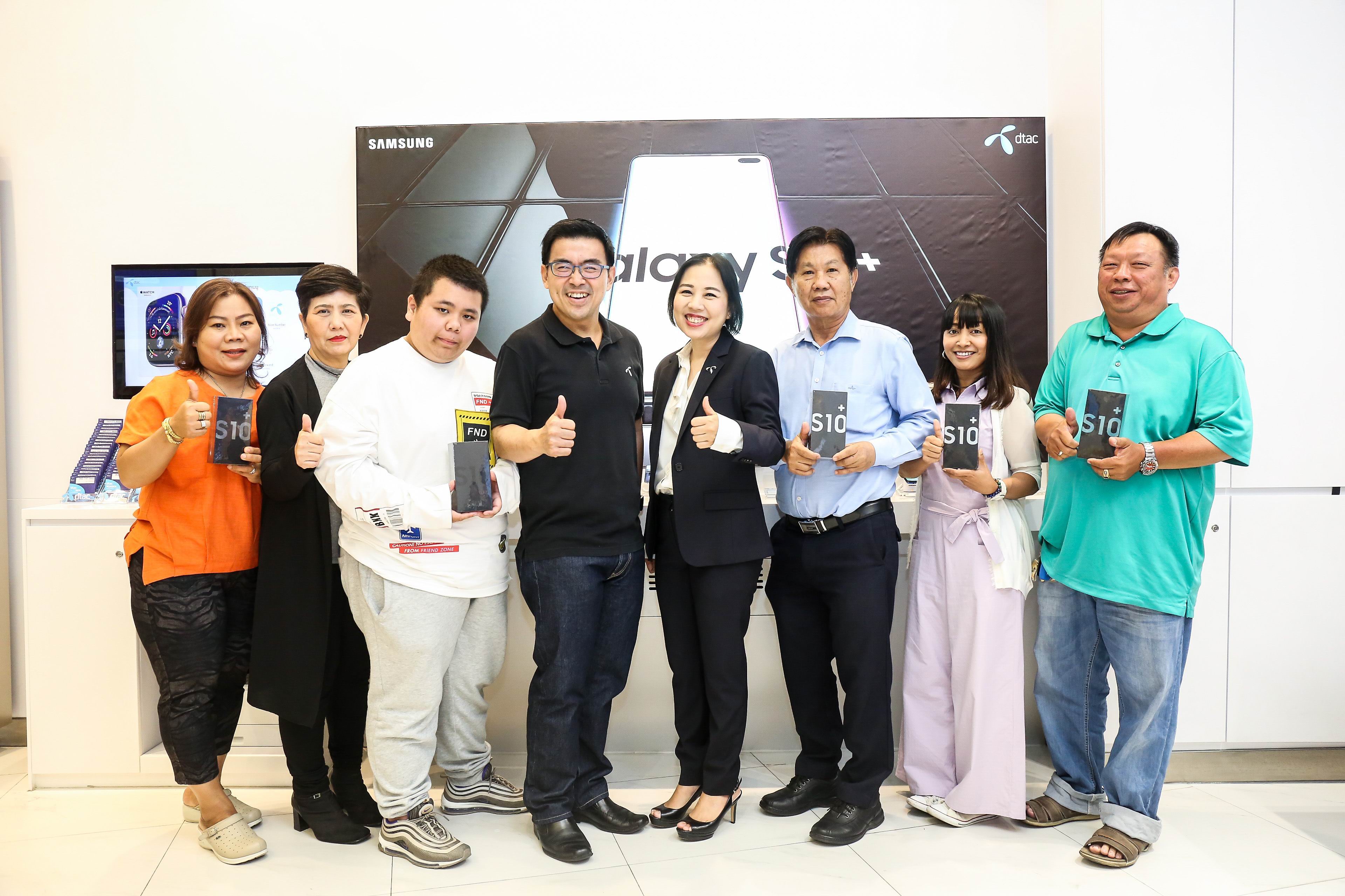 โดยนางสาวทิพยรัตน์ แก้วศรีงาม รองประธานเจ้าหน้าที่บริหาร กลุ่มงานขาย (ที่ 4 จากขวา) และนายไชยวัฒน์ อุดมศรีรุ่งเรือง ผู้อำนวยการอาวุโส หัวหน้าสายงานช่องทางบริการลูกค้า (ที่ 4 จากซ้าย) บริษัท โทเทิ่ล แอ็คเซ็ส คอมมูนิเคชั่น จำกัด (มหาชน) หรือดีแทค มอบเครื่อง ซัมซุง Galaxy S10 1/ Galaxy S10+ ที่เหนือกว่ากับสุดยอดสมาร์ทโฟนระดับพรีเมี่ยม ที่พลิกโฉมวงการสมาร์ทโฟน ตอบโจทย์ทุกไลฟ์สไตล์ของเจนเนอเรชั่นใหม่