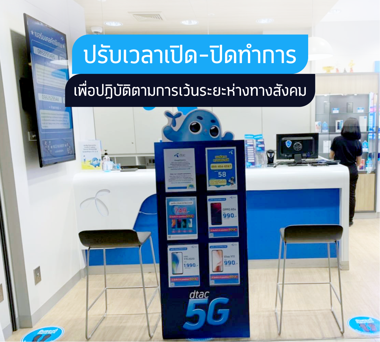• ยังคงมีศูนย์บริการจำนวน 175 ร้านที่ยังไม่เปิดให้บริการจนกว่ามีประกาศเปลี่ยนแปลง โดยสามารถค้นหาศูนย์บริการใกล้บ้านท่านได้ที่นี่ https://www.dtac.co.th/help/store-locations.html
