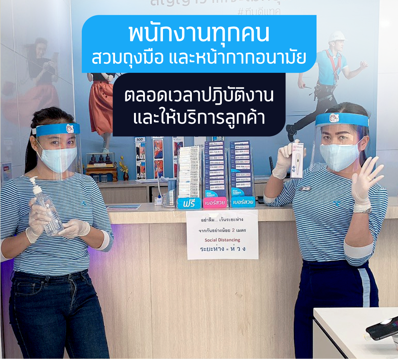 ดีแทคได้เพิ่มมาตรการรักษาความปลอดภัยเพื่อลูกค้าและพนักงานที่ให้บริการ ดังนี้