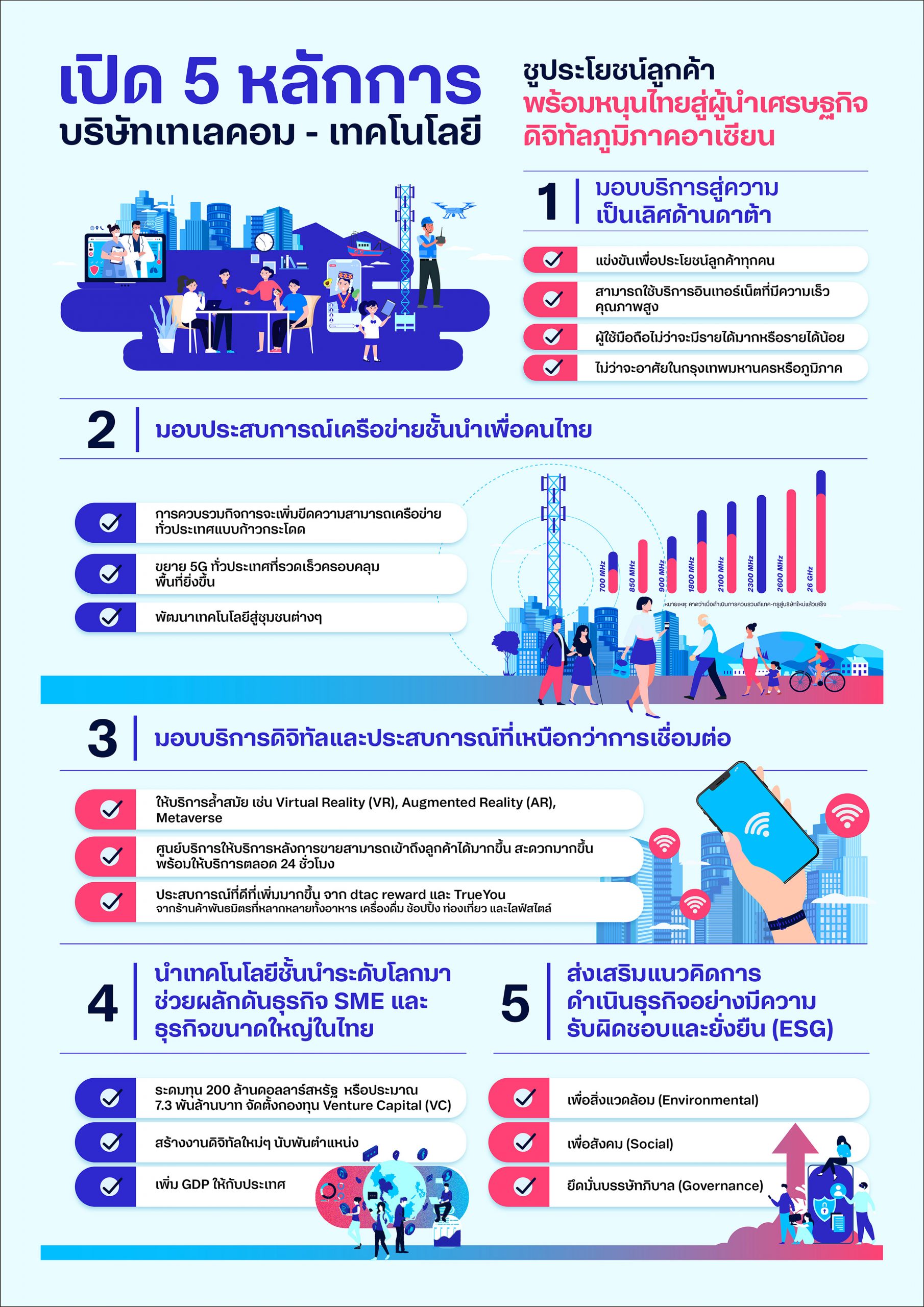 The telecom-tech company has set these 5 aspirations for the telecom-tech company to be clear on what Thai people can expect from the new company and to express our strong support to the future of Thailand’s digital and technological developments. Our key shareholders, CP Group and Telenor Group are fully behind us with support towards our goal of providing great value for customers and drive opportunities for Thai society to thrive in the digital economy.
