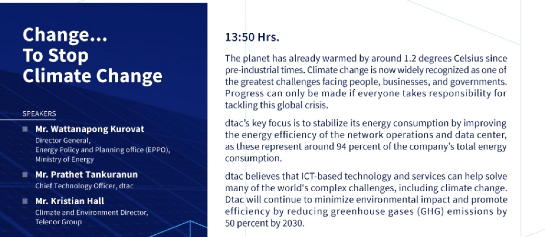 • dtac has committed to cutting its greenhouse gas emissions in half by 2030