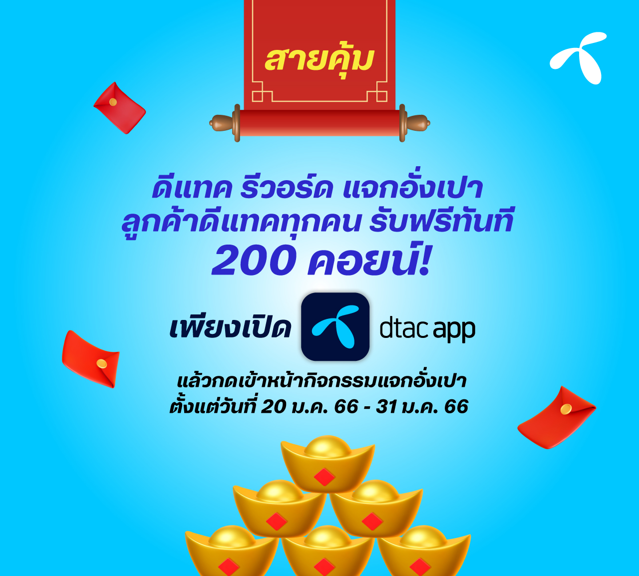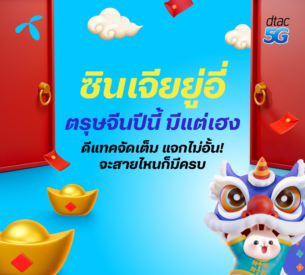 19 January 2023 – dtac remains committed to delivering great value to customers, and for the upcoming Chinese New Year we are offering tons of “Ang Pao” or “red envelopes” of freebies and goodies to help you ring in the Chinese Year of the Rabbit.