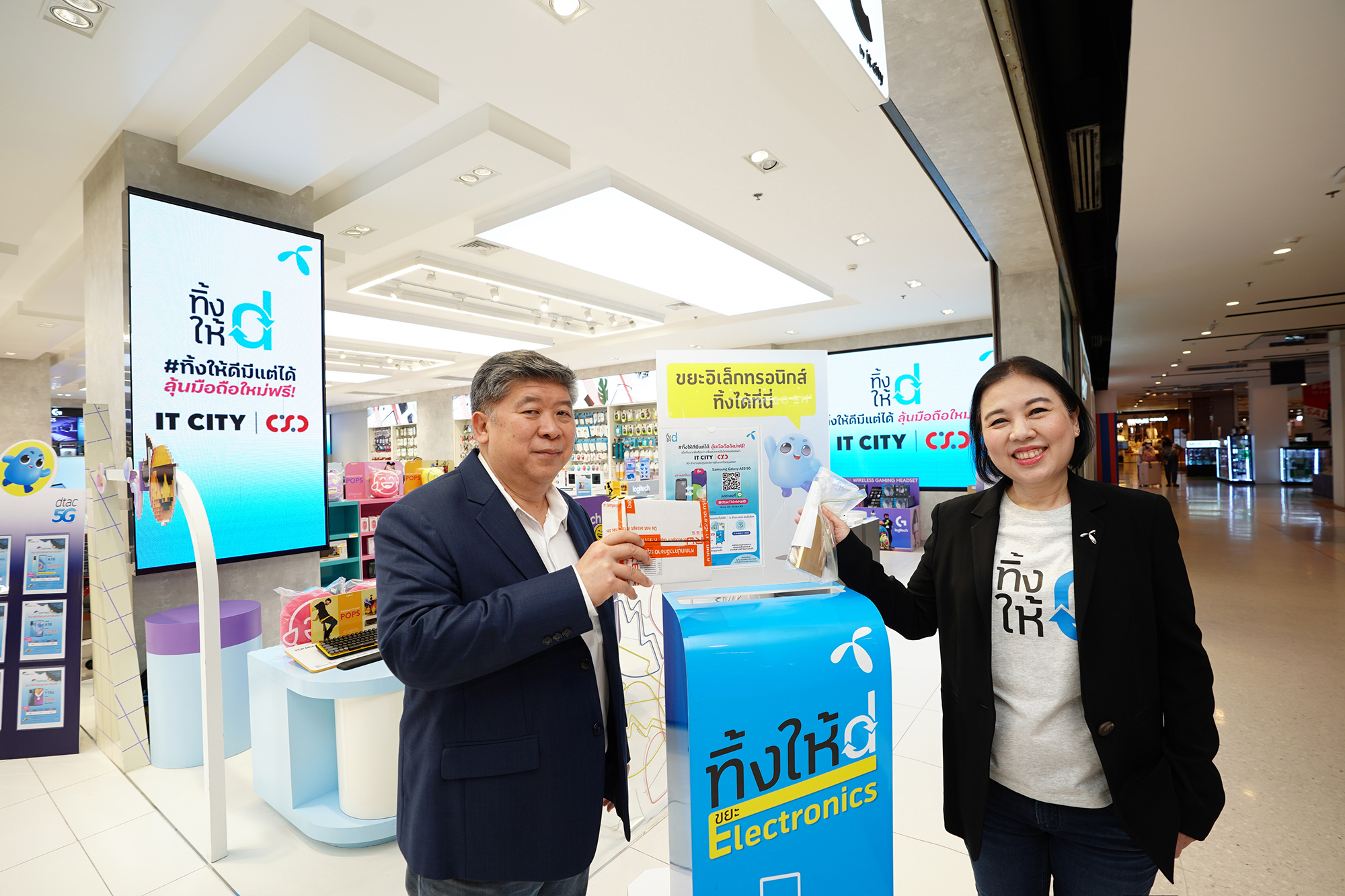 July 6, 2022 – dtac and IT CITY have teamed up to launch #ThinkHaiDeeMeeTaeDai campaign to create 30n additional e-waste drop-off points through IT CITY and CSC, Thailand’s leading IT superstore chain, across Bangkok. The collaboration is aimed at encouraging the return of old and end-of-life electrical and electronic equipment, also known as “e-waste”, to dedicated collection points as a part of proper e-waste management and to promote green growth and a circular economy.