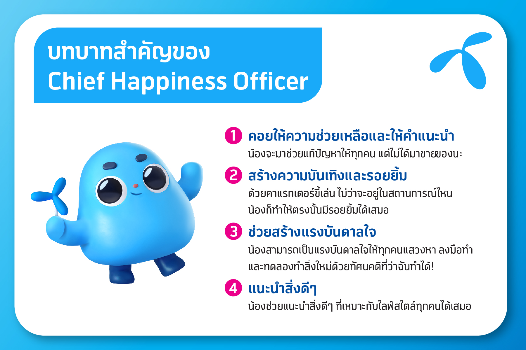 Feb 21, 2020 – Total Access Communication Plc or dtac today introduced a newly appointed executive position, Chief Happiness Officer, who will play a vital role in communicating dtac brand with sincerity, honesty, simplicity and humanization, delivering happiness to all dtac customers.