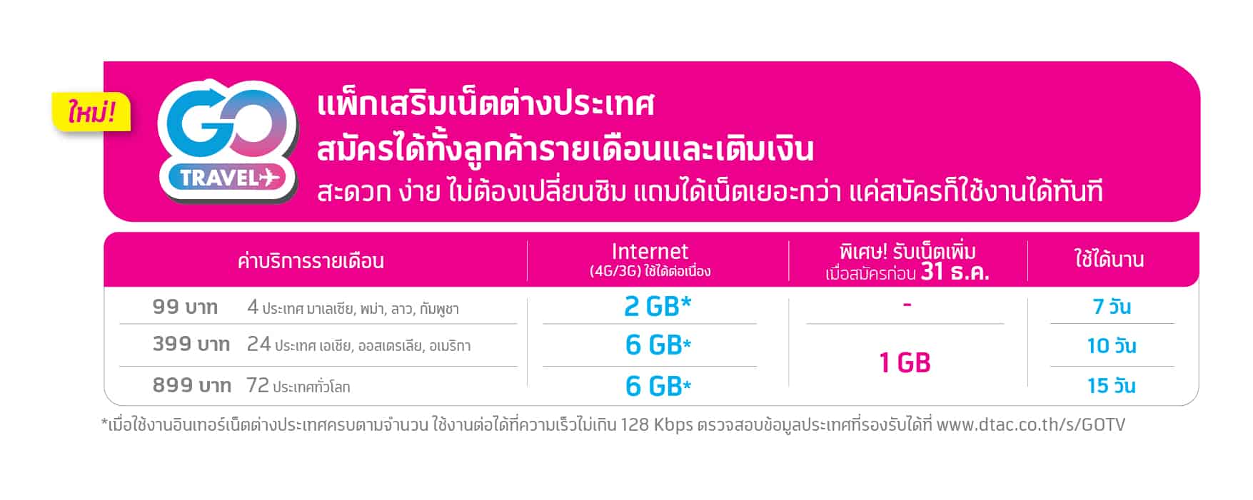 dtac GO, a new monthly price plan, specifically suits those who like travelling with affordable prices, more convenient, and data rollover.