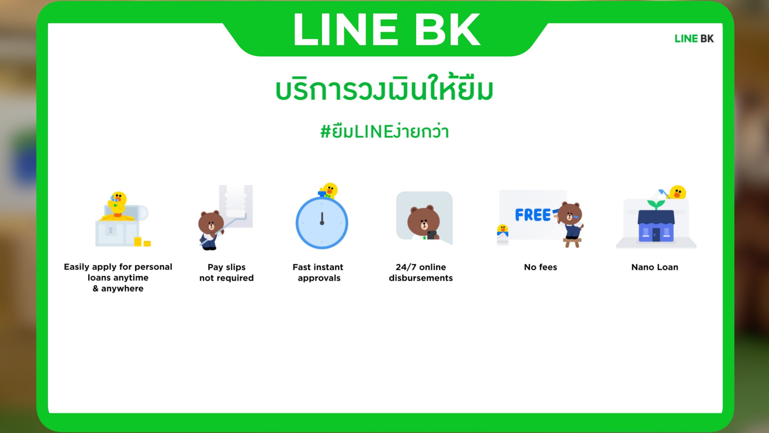 Mr. Tana Photikamjorn, CEO of KASIKORN LINE Co., Ltd., said, “This strategic partnership resonating the concept of ‘Banking in Your Hand.’ The key is to help customers easily apply personal loans anywhere, at any time, and get a quick instant approval, especially under the current economic situation. LINE BK aims to revolutionize the traditional loan application process through its simplicity, reliability and more relaxed criteria. Customers with a monthly income at least 5,000 Baht will be able to access a credible source of fund through LINE BK’s loan services and to reduce risk when seeking informal loans.”