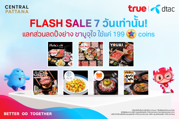 - Happy dining at Central Department Stores nationwide with FLASH SALE, a valuable deal offered every week. dtac reduces number of coins to use at selected restaurants in Central Department Stores to only 199 coins from the regular 399 coins to get 20 baht discount for dtac PLATINUM BLUE MEMBER while GOLD MEMBER uses only 499 coins from the regular 999 coins to get 50 baht discount with selected restaurants and food chains such as Swensen’s / Dairy Queen / Shabushi /You&I / KOI the / Sushiro /Auntie Anne’s and many more from today to June 15th, 2023.