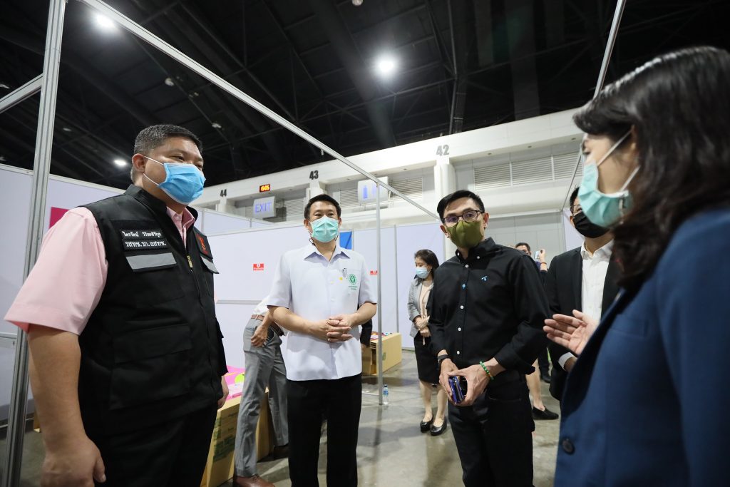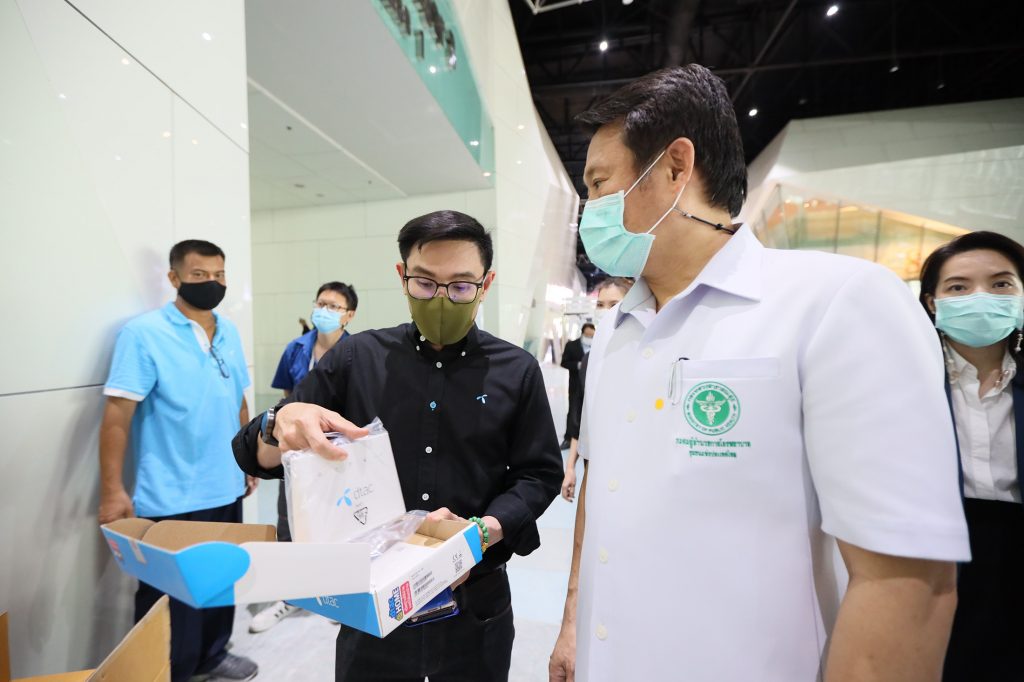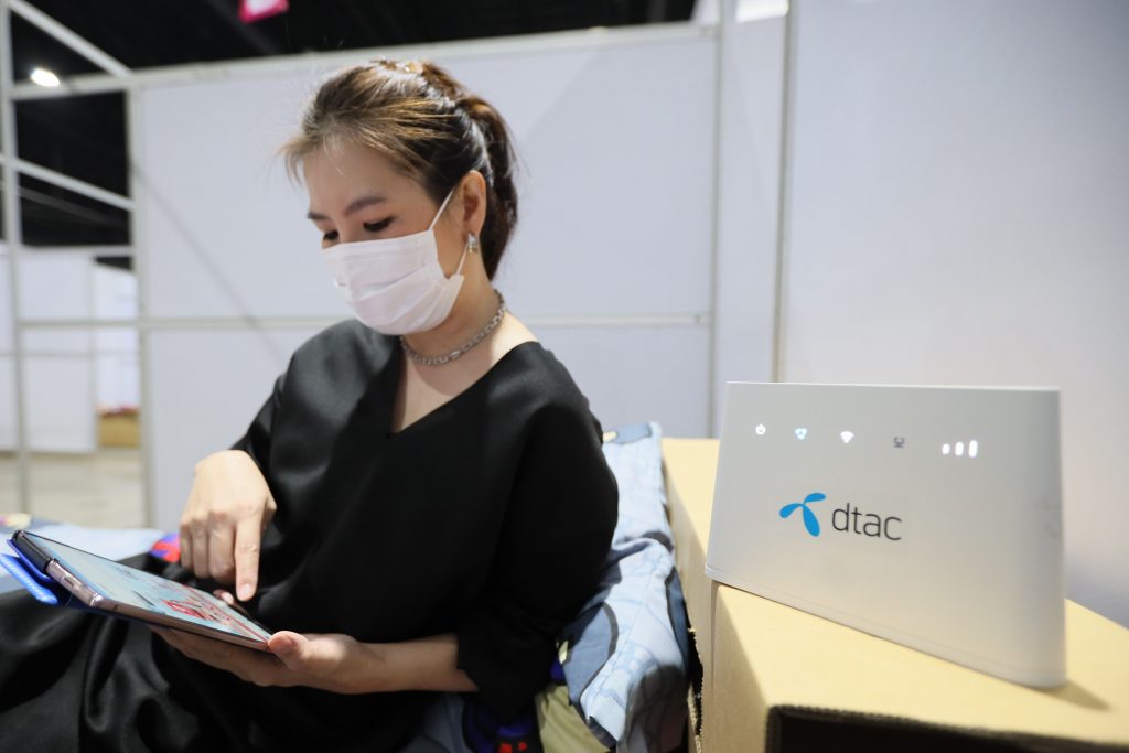 Mr. Lertratana Ratananukul, Head of Government Relations of Total Access Communication PLC or dtac, inspected the preparations at the Bussarakham 1-5 Field Hospital within the IMPACT Challenger Hall in Muang Thong Thani. He demonstrated the system readiness of the dtac mobile network, high-speed internet, and the free Wi-Fi service using dtac@Home set boxes to Mr. Trairat Wiriyasirikul, Acting Secretary of NBTC, and Dr. Anan Kanoksilp, Director of ICT center, Office of Permanent Secretary, Ministry of Public Health. dtac offered the dtac@Home set box system to support the work of doctors, nurses, officials, and other personnel working hard to treat and contain the COVID-19 pandemic, which is also accessible to the patients in care.