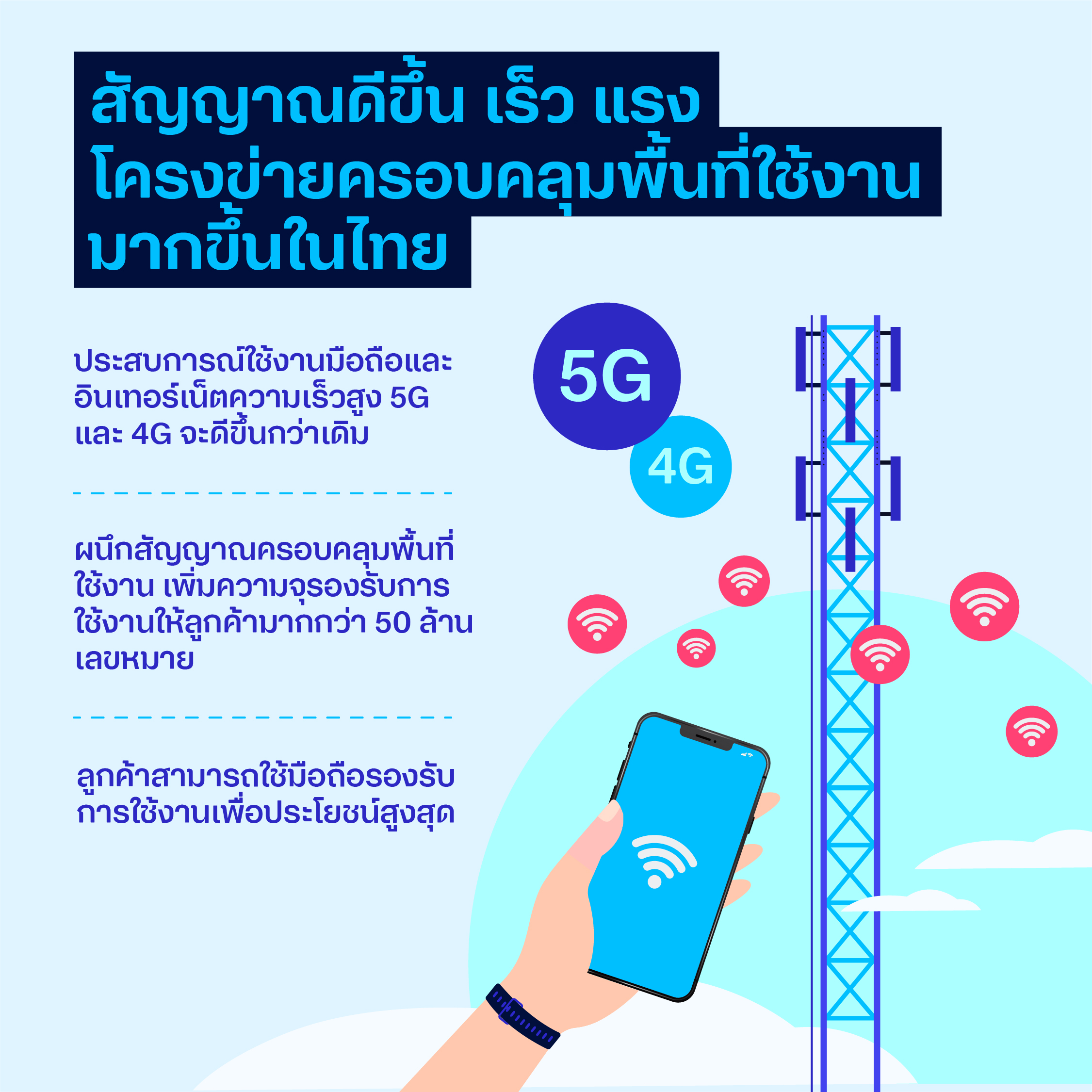 Improved mobile experience with 5G and 4G broadband internet with more efficient services due to merged coverage, and more capacity for the company’s 50 million customers by providing the best access across all provinces in Thailand. With access to True and dtac’s combined infrastructure, customers will get the ultimate mobile experience.