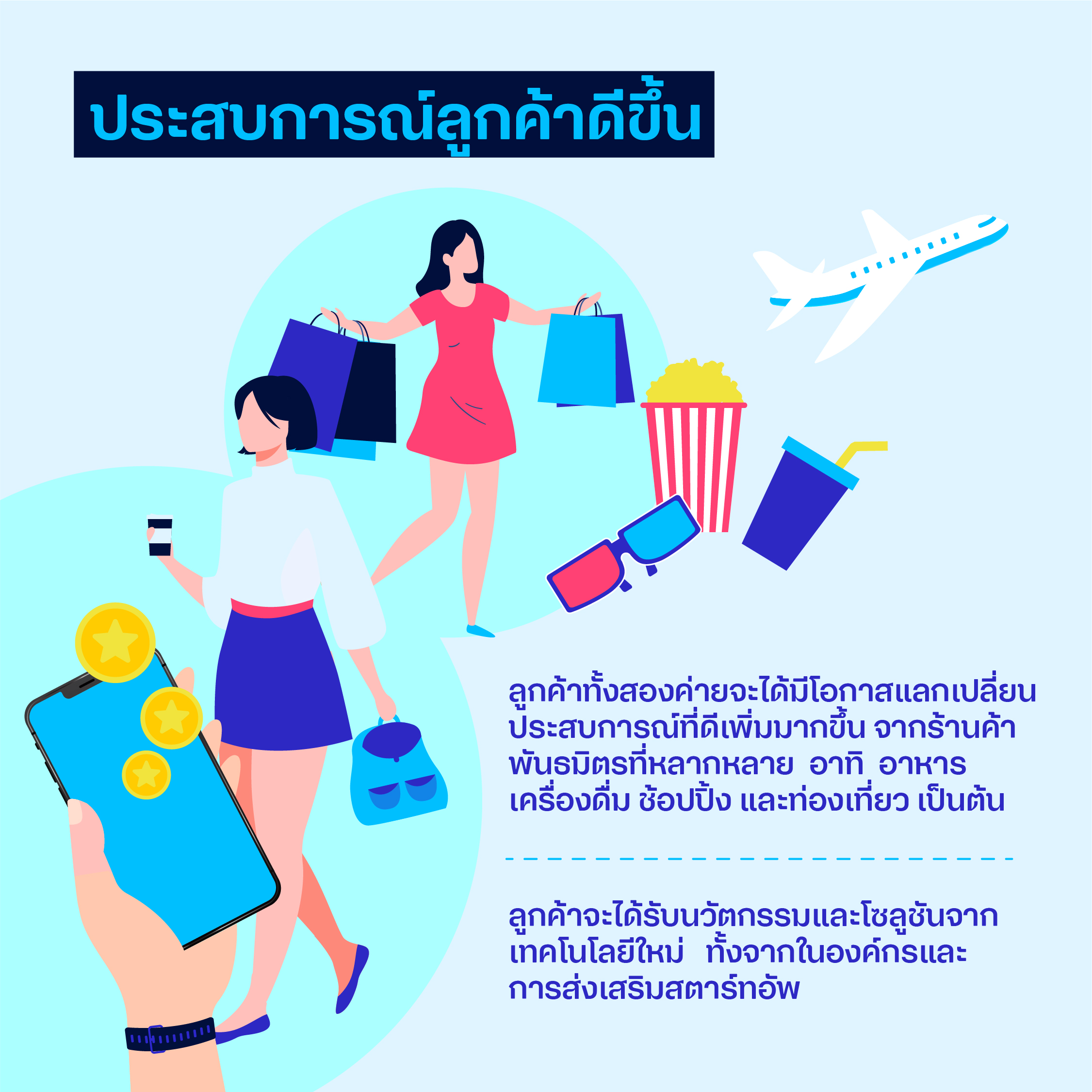 Customers will benefit from even greater experiences and privileges from dtac reward and TrueYou. dtac and True customers will be able to redeem points from dtac reward coins and True Points at partner stores that provide food, beverages, shopping, travel, and lifestyle experiences.