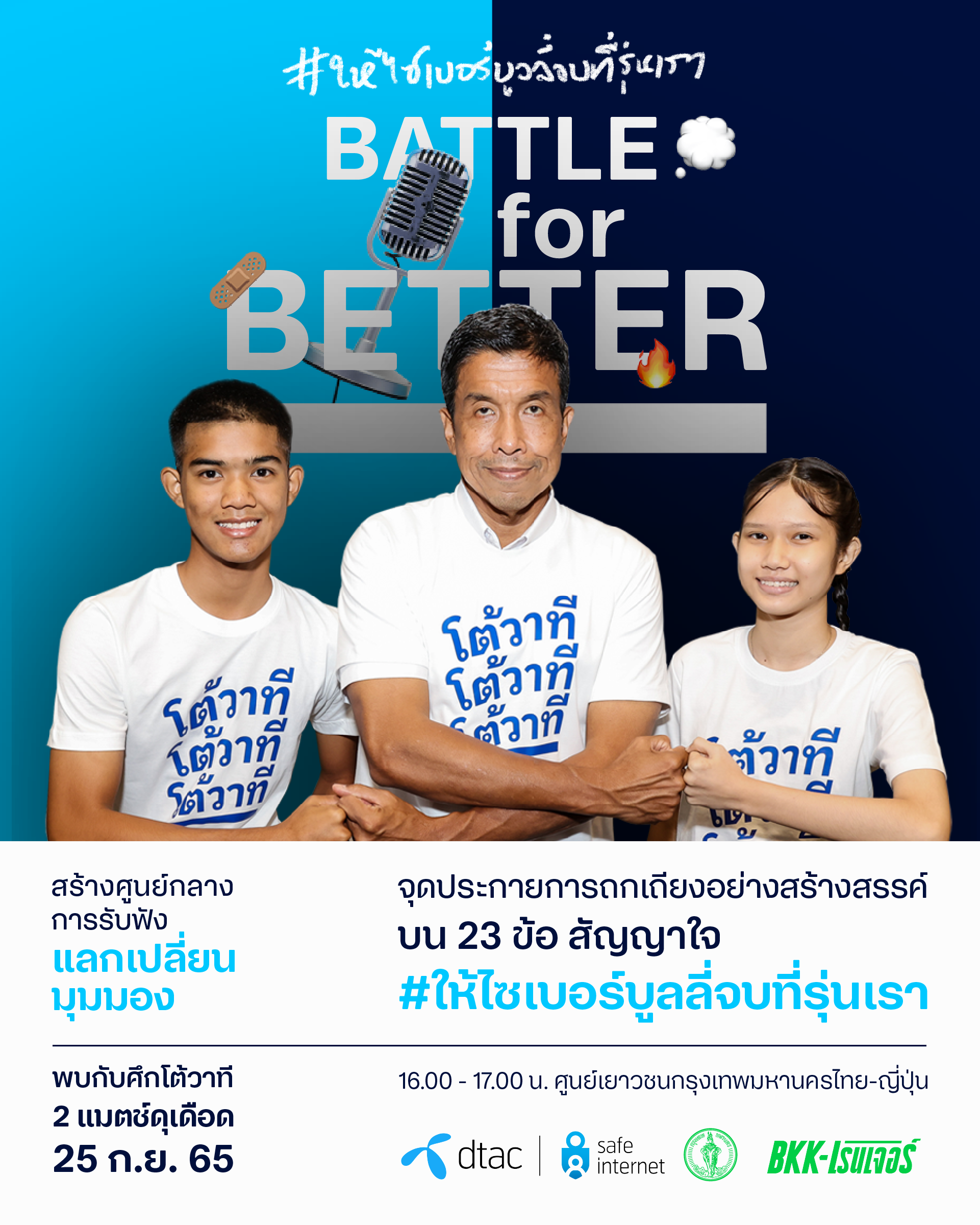 The debates will also be broadcast live via dtac’s Twitter page, using the hashtag #BattleforBetter