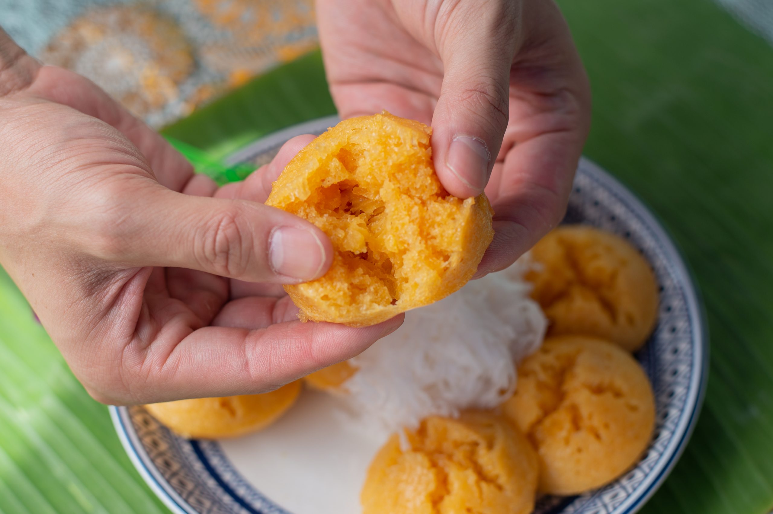 You can buy Mum Jumras’ freshly-steamed toddy palm cake and Thai-style banana cake with coconut filling from the brand’s first branch at Arunthong 3 Village, its second branch at Wat Chimplee Morning Market, or through its Facebook page: https://www.facebook.com/Mumjumras