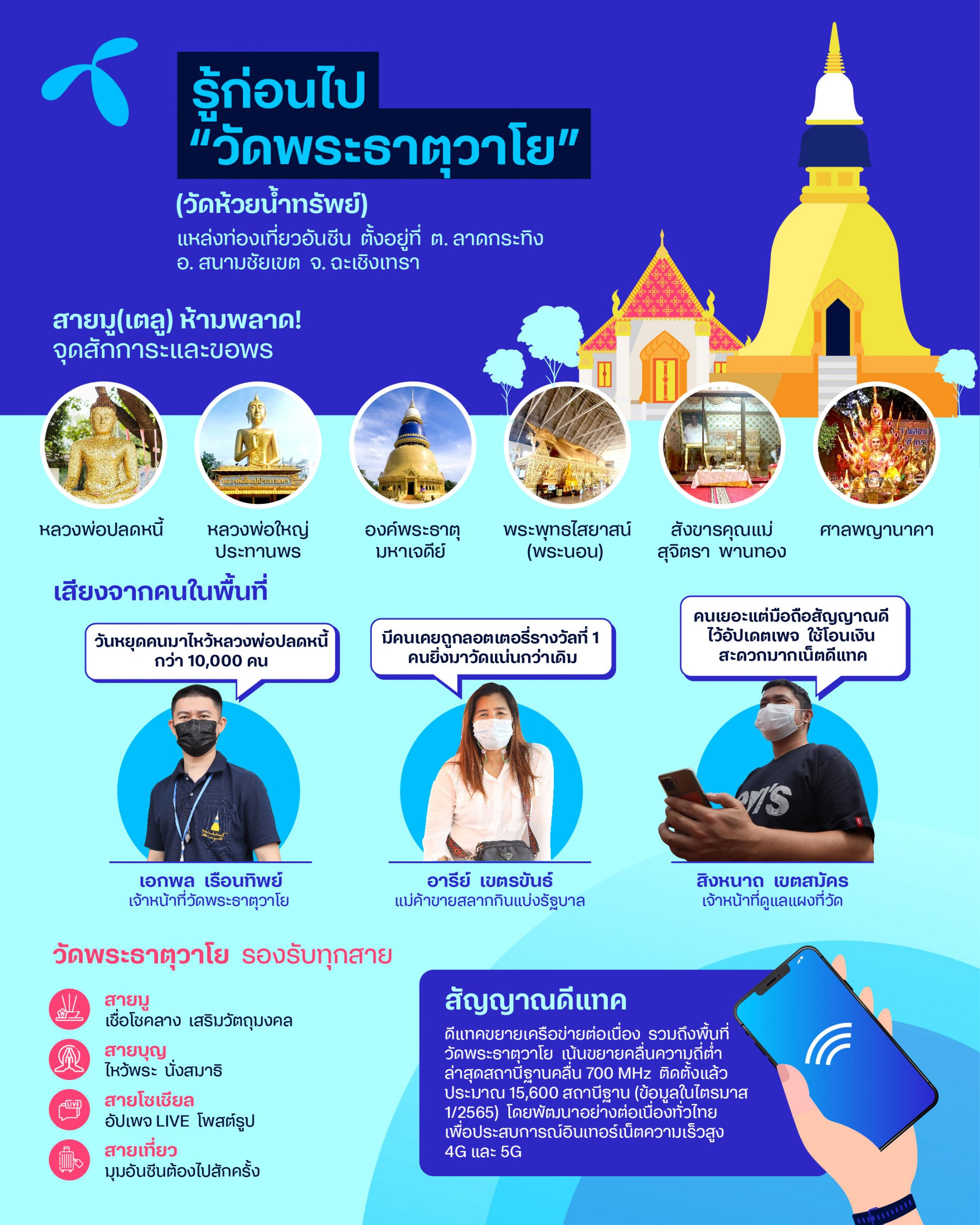 Indeed, dtac has expanded its network on a continuous basis to accommodate growing usage across Thailand, including at Wat Phra That Wayo. The expansion focuses mainly on the 700 MHz frequency. During the past quarter alone, dtac has installed more than 2,800 low-frequency base stations, and as of Q1 2022, approximately 15,600 base stations operate on the 700 MHz frequency, leading to improved customer experiences on both 4G and 5G.