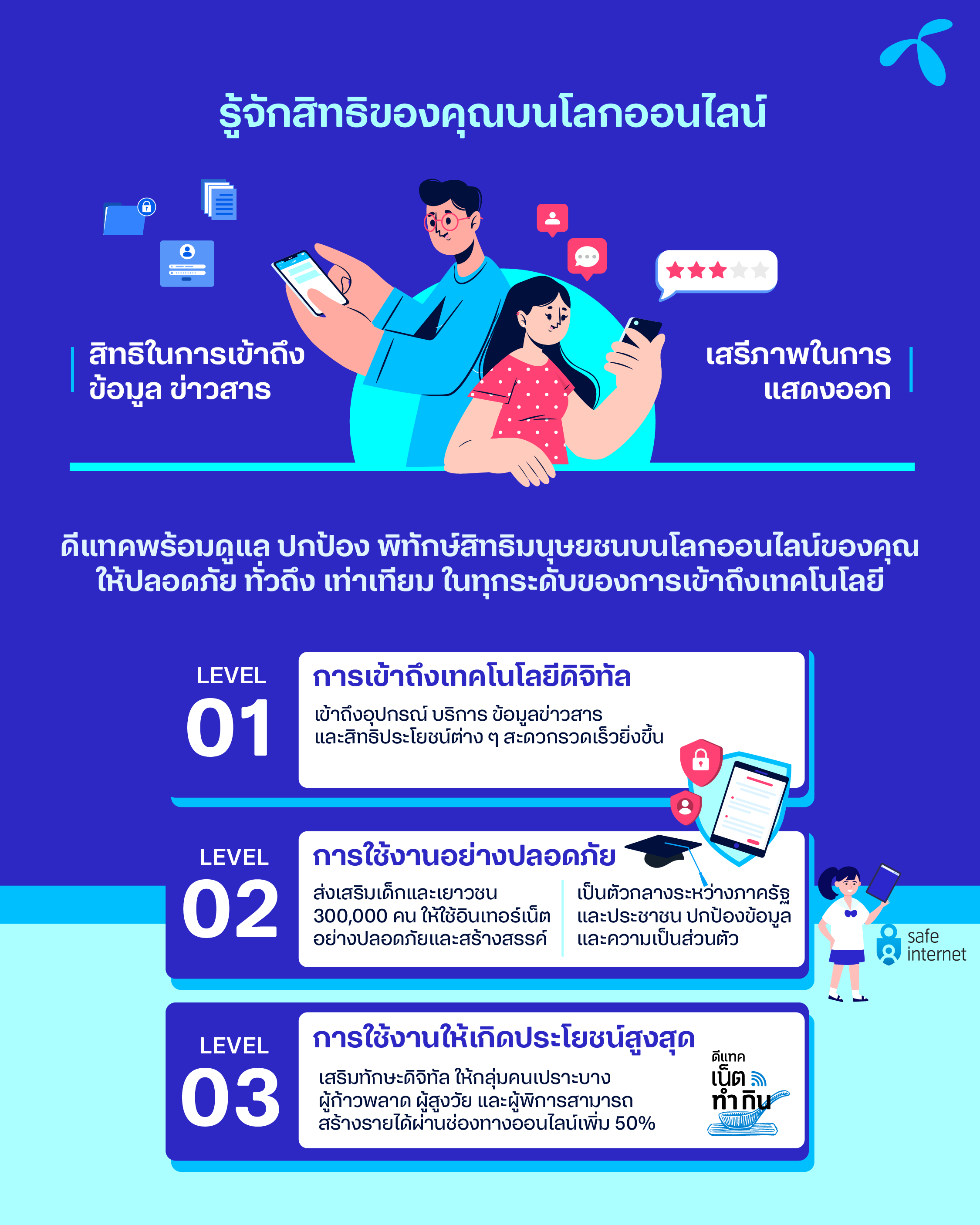 After assessing the potential risks and impacts of the telecommunications industry on human rights, dtac has identified the right to information and freedom of expression as important, and the mobile operator is committed to safeguarding and promoting these rights as part of its efforts to foster a digitally inclusive society.