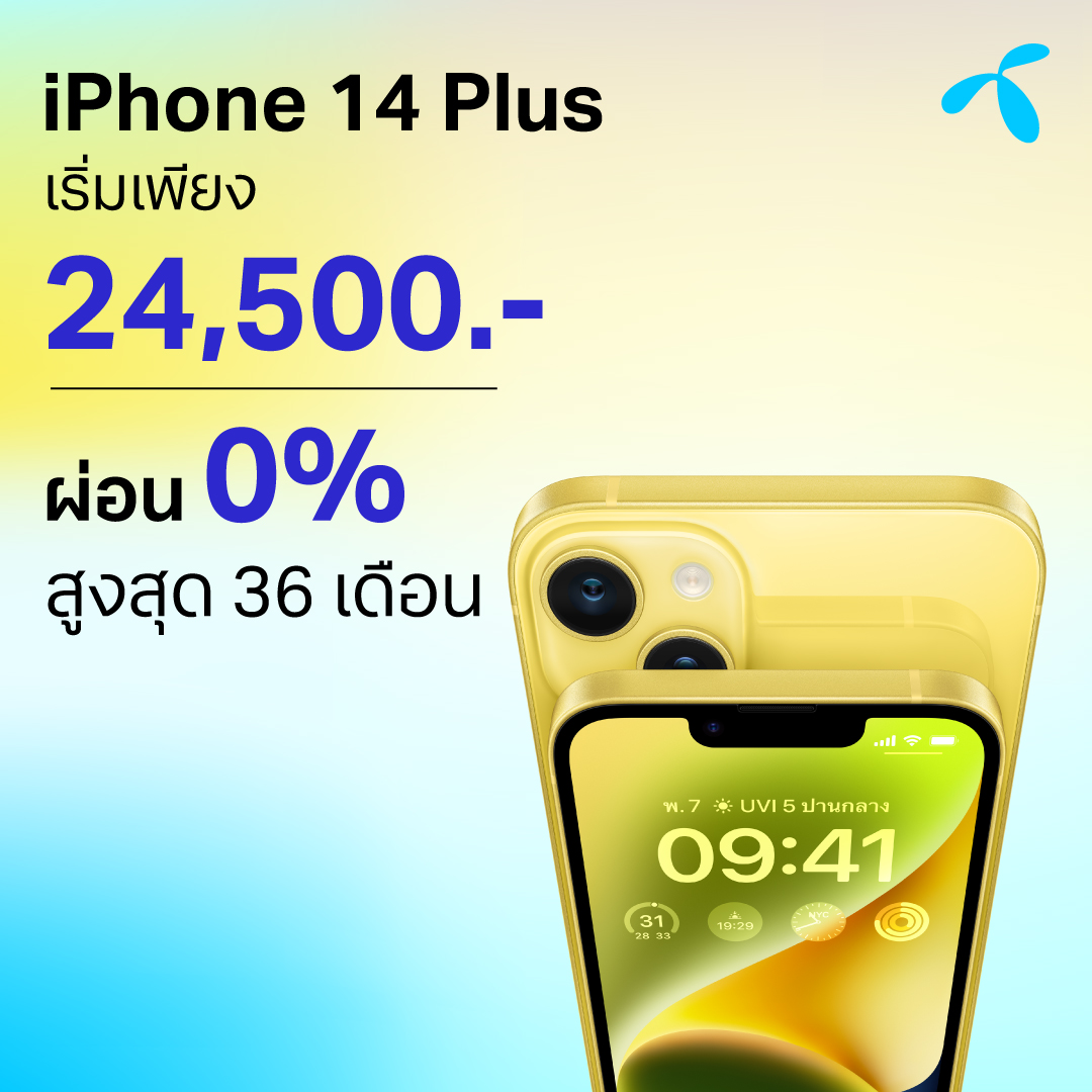 March 14 2023 – dtac is offering the new yellow iPhone 14 and iPhone 14 Plus, adding even more color choices to the iPhone 14 lineup. Beautifully designed and built to last, iPhone 14 and iPhone 14 Plus have a durable Ceramic Shield front cover, an updated internal design for better sustained performance and easier repairs, and incredible battery life — with iPhone 14 Plus offering the longest battery life of any iPhone ever.1 Both models include a dual-camera system for stunning photos and videos, the powerful A15 Bionic chip with 5-core GPU, superfast 5G, and innovative safety capabilities including Crash Detection. The new yellow iPhone 14 and iPhone 14 Plus will are available starting today Tuesday, March 14.
