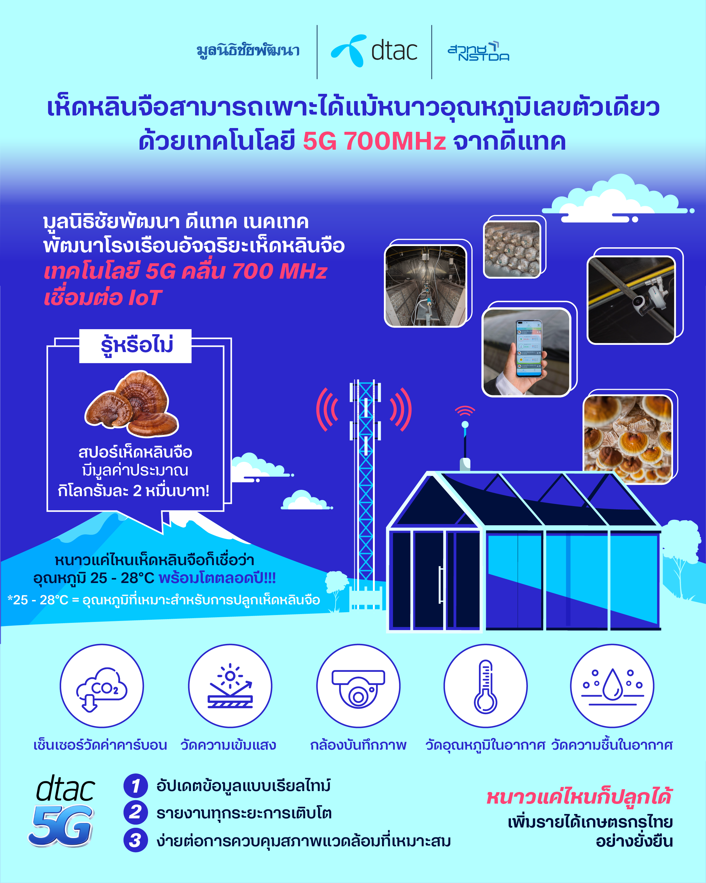 dtac, Chaipattana Foundation and NECTEC Reveal Major Breakthrough on Lingzhi Cultivation via 5G on 700 MHz | dtac blog