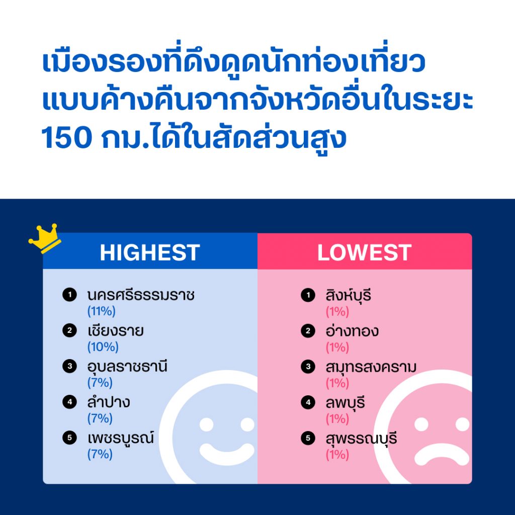 With these three indicators combined, they highlight 21 second-tier provinces with potential to develop experience-based overnight tourism. The list includes Nakhon Si Thammarat, Phetchabun, Chiang Rai, Ubon Ratchathani, Phitsanulok, Chumphon, Chanthaburi, Si Sa Ket, Buri Ram, Loei, Trat, Nan, Nakhon Sawan, Udon Thani, Lampang, Roi Et, Surin, Maha Sarakham, Satun, Trang, and Chaiyaphum, respectively.