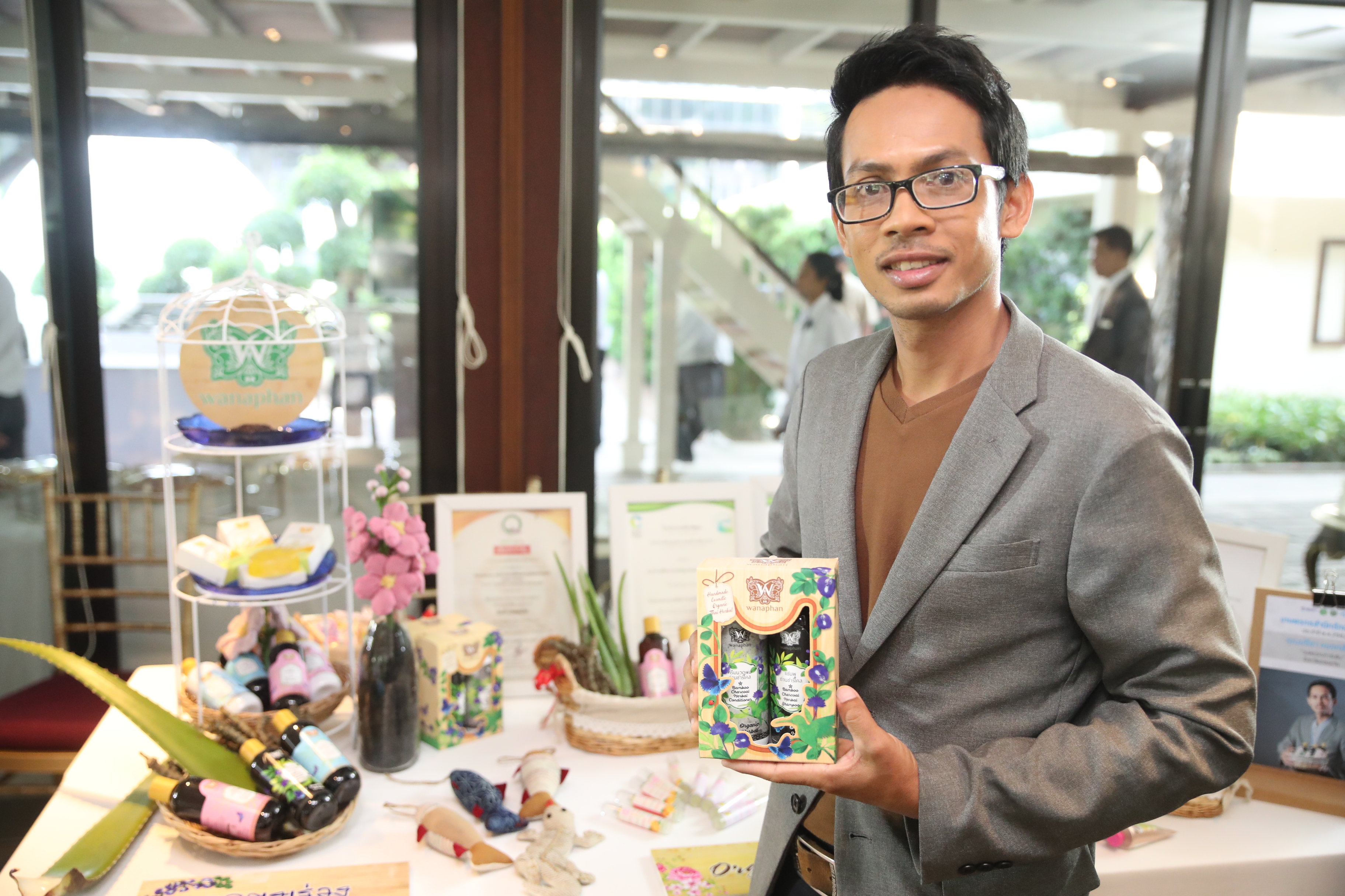 His farmland consists tree bank, organic farm, organic chicken farm and area for agritourism. In addition, he also created his own cosmetic brand called WANAPHANW, adding more value for his organic herbs.