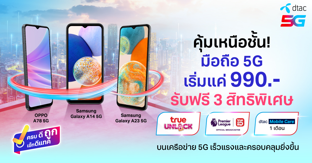 Switch to dtac for the best value and 5G smartphone deal with select dtac 5G Better plans. Check out the details here: https://www.dtac.co.th/best-deal/smartphone-deals-5g.html