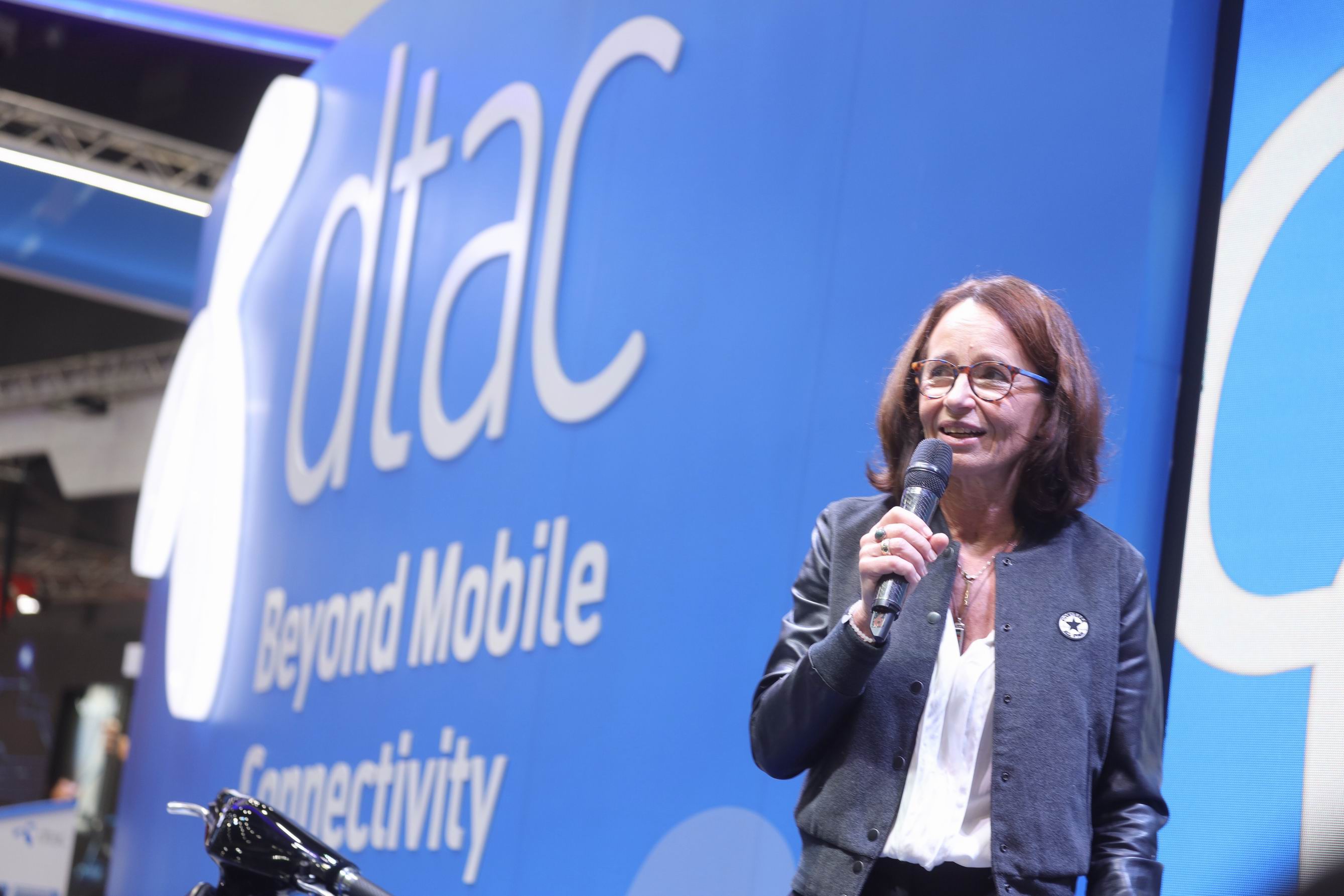 นางอเล็กซานดรา ไรช์ ประธานเจ้าหน้าที่บริหาร บริษัท โทเทิ่ล แอ็คเซ็ส คอมมูนิเคชั่น จำกัด (มหาชน) หรือดีแทค (ที่สามจากขวา) ร่วมกับนายทนง ลี้อิสสระนุกูล ประธานกรรมการ (ที่สามจากซ้าย) นายโอภาส เฉิดพันธุ์ ประธานเจ้าหน้าที่บริหาร บริษัท เอ็มวิชั่น จำกัด (มหาชน) (ที่สองจากขวา) พร้อมด้วยนายพงษ์ชัย อมตานนท์ ประธานกรรมการบริหาร บริษัท ฟอร์ท สมาร์ท เซอร์วิส จำกัด (มหาชน) (ขวาสุด) ร่วมเปิดตัวแพลตฟอร์มรถมอเตอร์ไซค์ EV ครั้งแรกของไทย ในงานไทยแลนด์ โมบายล์ เอ็กซ์โป 2019