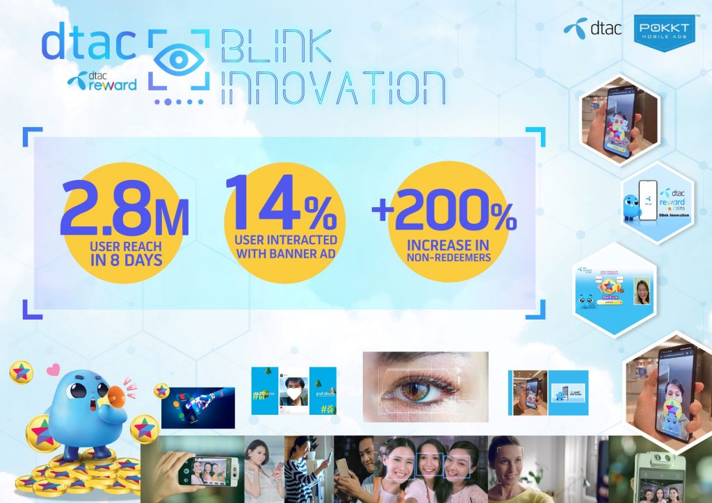 Challenge: ปัจจุบันการทำให้ผู้บริโภคมีปฏิสัมพันธ์กับแบรนด์หรือแคมเปญมีความท้าทายมากยิ่งขึ้น ดีแทคจึงได้ร่วมมือกับผู้ให้บริการโซลูชันโฆษณามือถือ Pokkt ในการพัฒนาแบนเนอร์โฆษณาที่ผู้เห็นสามารถมีปฏิสัมพันธ์ด้วยเพียง “กระพริบตา” ซึ่งถือเป็น “ครั้งแรก” ของการพัฒนาประสบการณ์แบบไร้การสัมผัสหรือ Touch Free กับลูกค้าดีแทค
