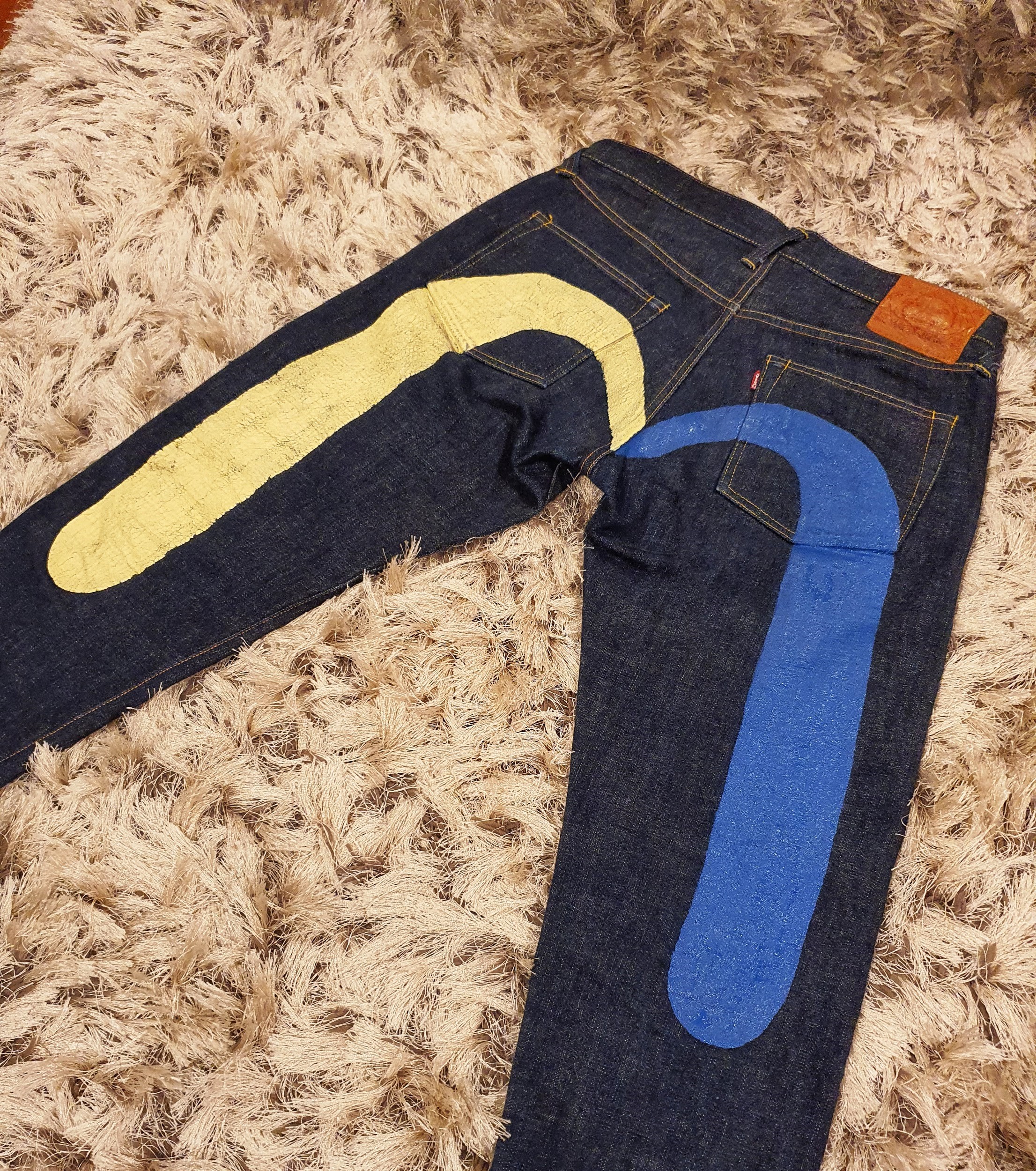“ตัวนี้เป็นกางเกงตัวโปรดที่ได้จากตอนไปเที่ยวโอซาก้า สำหรับแบรนด์ EVISU นี้ทางร้านให้เลือกลงสี signature ประจำเมืองใหญ่ของญี่ปุ่นได้เองเลย ซึ่งจริงๆ แล้วจะเลือกได้แค่สีเดียว แต่เหมือนว่าเขาถูกชะตากับเราก็เลยยอมลงให้ 2 สีในตัวเดียวเลย เลยเป็นตัวโปรดเพราะเหมือนมีตัวเดียวในโลกเป็นของเรา”