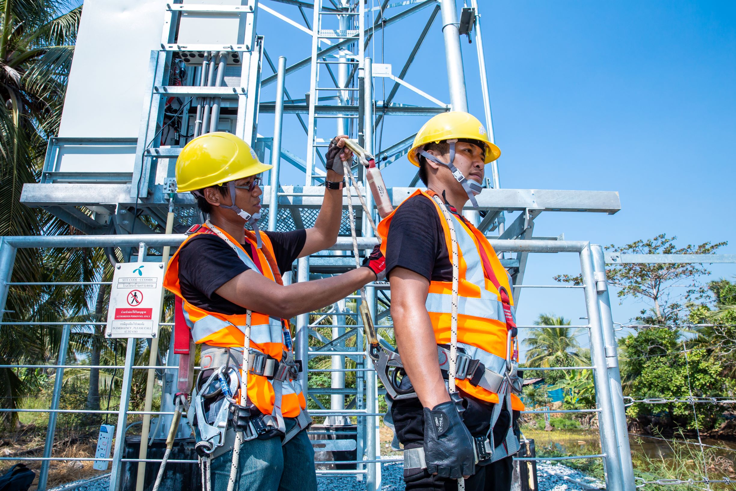 - จัดให้มีหน่วยงานกำกับดูแลบริษัทคู่ค้าในการสำรวจ ตรวจประเมินและให้ความรู้และคำแนะนำในเรื่องความปลอดภัยและการใช้อุปกรณ์ป้องกันอันตรายส่วนบุคคลในการทำงานของผู้ปฏิบัติงาน ไม่ว่าจะเป็นงานสร้างเสาส่งสัญญาณโทรศัพท์ หรืองานติดตั้งอุปกรณ์ส่งสัญญาณ เพื่อให้มั่นใจว่าผู้ปฏิบัติงานมีความปลอดภัยและไม่ก่อให้เกิดอุบัติเหตุหรืออันตรายที่รุนแรงถึงขั้นเสียชีวิตจากการทำงานให้ดีแทค