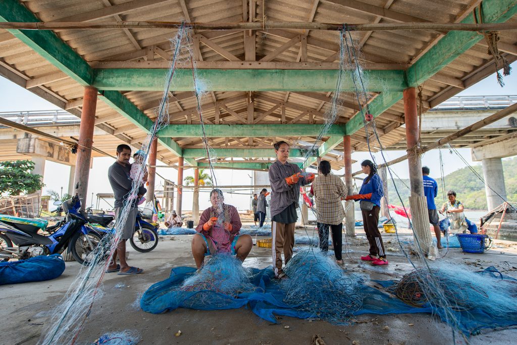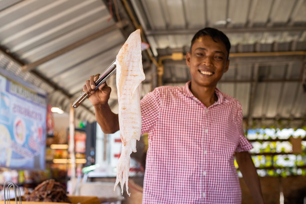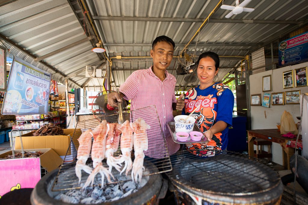 “เมื่อเรือขึ้นแล้ว ทีมงานจะนำของทะเลที่ได้มาแยกชนิด อย่างปลาหมึกก็จะมีการคัดไซส์ แบ่งเป็นเล็ก กลาง ใหญ่ จากนั้นนำไปทำความสะอาด และทำตามกระบวนการต่อไป อย่างหมึกกระตอยก็จะนำไปตากแห้ง เช่นเดียวกับหมึกศอกขนาดใหญ่ที่นำไปจำหน่ายไหว้เจ้าตามธรรมเนียมของคนจีน บางส่วนก็จะนำไปแช่แข็งทันที เพื่อให้ลูกค้าได้รับประทานแต่ของสดและอร่อยเท่านั้น” เขากล่าว