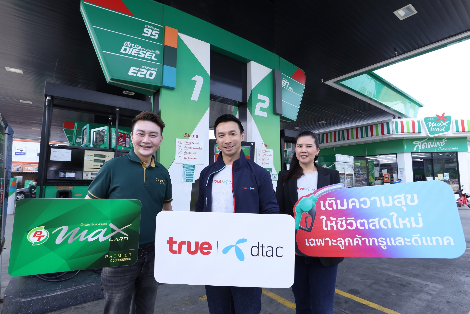 บมจ.ทรู คอร์ปอเรชั่น โดย นายฐานพล มานะวุฒิเวช (ที่ 3 จากขวา) หัวหน้าคณะผู้บริหารกลุ่ม (ร่วม) ด้านการพาณิชย์ พร้อมด้วย นางสรรค์พิจิตร เอี่ยมชีรางกูร (ซ้าย) หัวหน้าสายงานบริหารความสัมพันธ์ลูกค้า (ร่วม) พร้อมด้วย บริษัท แมกซ์ โซลูชัน เซอร์วิส จำกัด โดย นายพร้อมศักดิ์ จรัญญากรณ์ (ที่ 3 จากซ้าย) กรรมการ และนางสาวน้ำผึ้ง เกิดปฐม (ที่ 2 จากซ้าย) ผู้อำนวยการฝ่ายพัฒนาธุรกิจ ร่วมประกาศความร่วมมือสตาร์ทความสุขตลอดการเดินทางให้ลูกค้าทรู-ดีแทคคนสำคัญได้แล้ววันนี้ ณ สถานีน้ำมัน PT ทั่วประเทศ, AUTOBACS และร้านกาแฟพันธุ์ไทย รับสิทธิ์ผ่านแอปทรูไอดี และดีแทคแอป ตั้งแต่ 15 ก.พ. 2566 – 31 ม.ค. 2567 ดังนี้